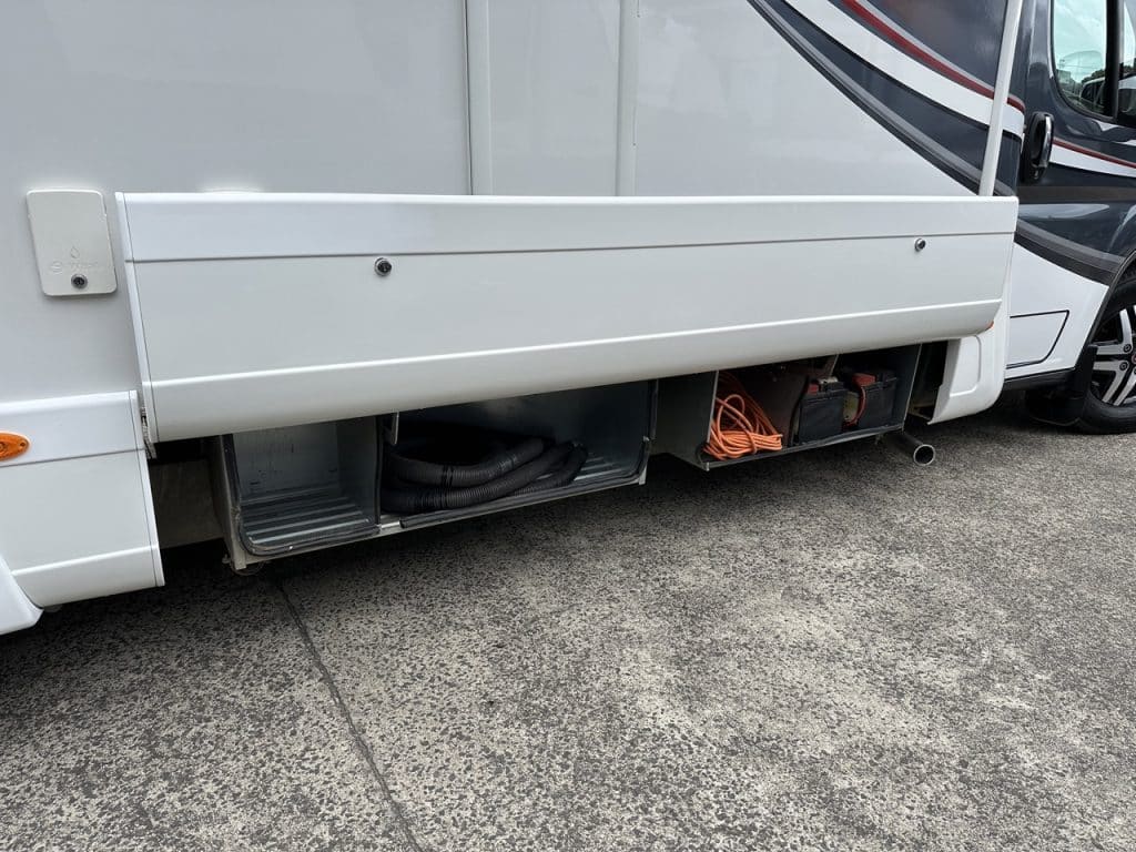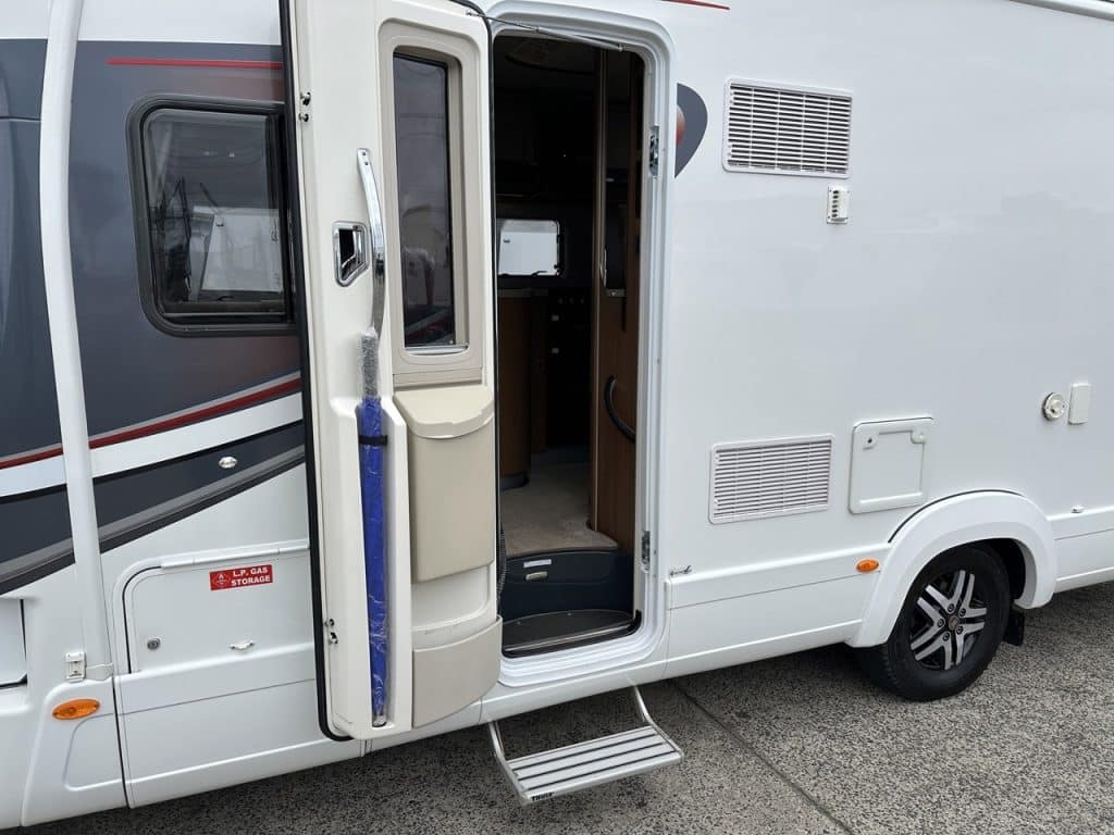 High security entrance door with central locking with blind, waste bin, flyscreen and auto-trail umbrella storage