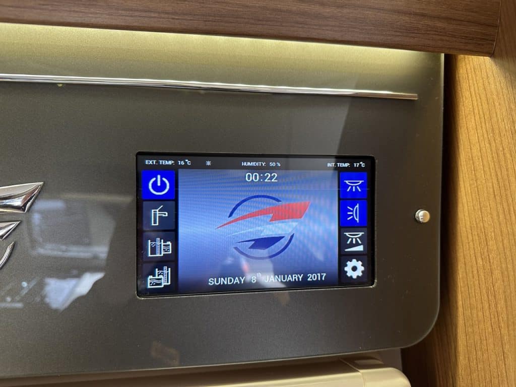 Digital control panel with light controls, water pump control, fresh & waste water tank gauges
