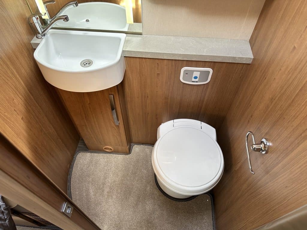 Ensuite with door, sink, flick mixer, window, towel holder, toilet roll holder & roof hatch