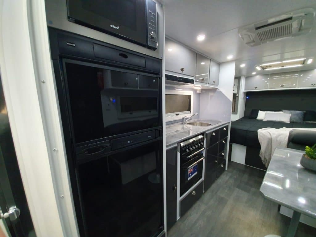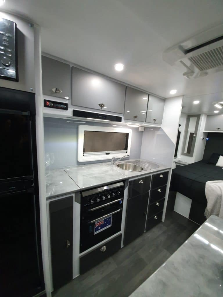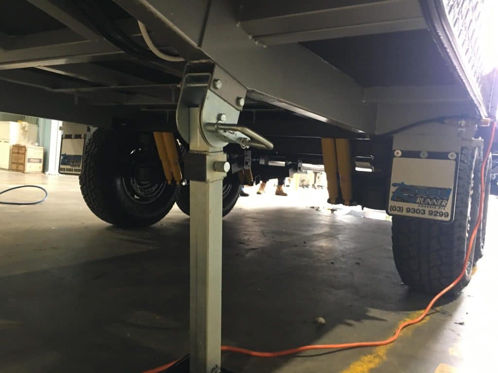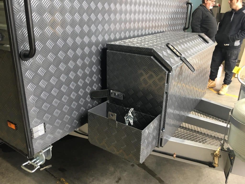 PLUMBING 2 x 95Ltr Water Tanks ÛÜ2 x Gas Bottles ÛÜExternal Shower ÛÜWater Filter ÛÜGas Bayonet CHASSIS Cut Away Back ÛÜ6″ Deck Extended 6″ Frame ÛÜD035 Hitch SUSPENSION 3.5t Oztrekker Suspension |