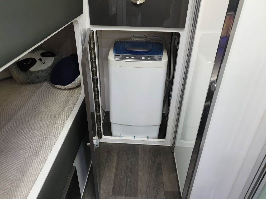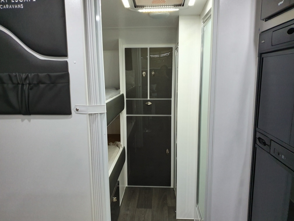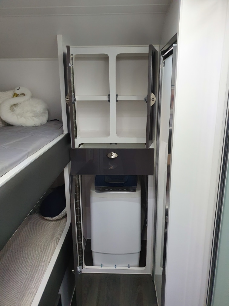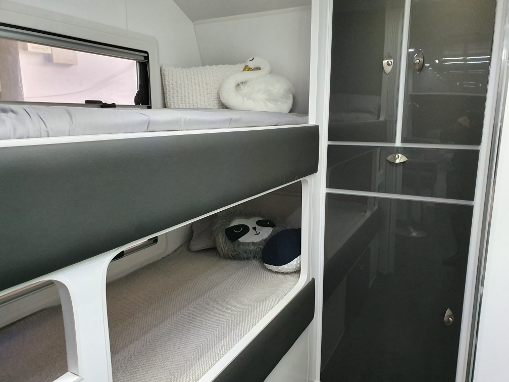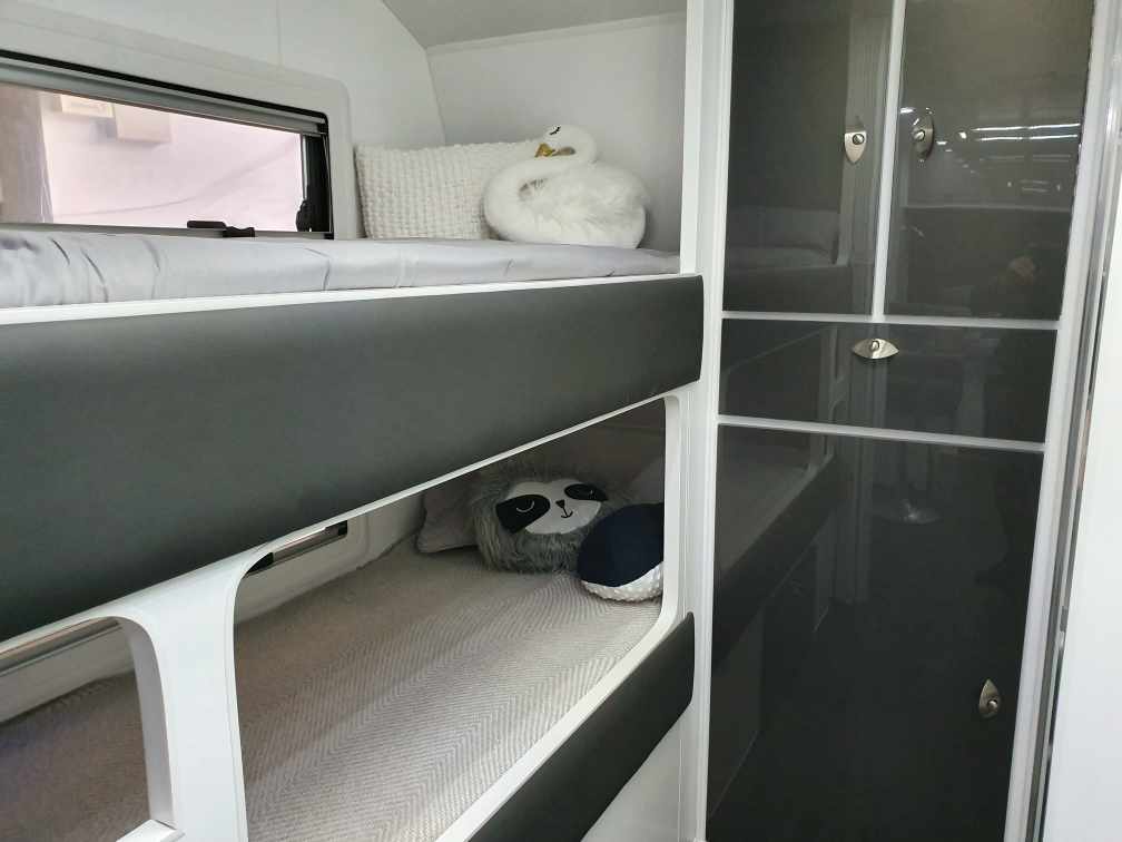 INTERNAL L-Shaped Lounge ÛÜ2 or 3 Bunk Beds Queen Island Bed Stainless Steel Single Bowl Sink Separate Shower and Toilet ÛÜPiano Hinges ÛÜShell Lock Handles ÛÜAcrylic Splashback ÛÜLaminate BenchtopsÛÜ APPLIANCES Oven ÛÜTouch Range Hood Microwave 184Ltr 3-Way Fridge/Freezer 20″TV Radio/DVD Player Ibis 3 Air Conditioner 28Ltr Gas/Electric Hot Water System 2.5kg Washing Machine ÛÜ |