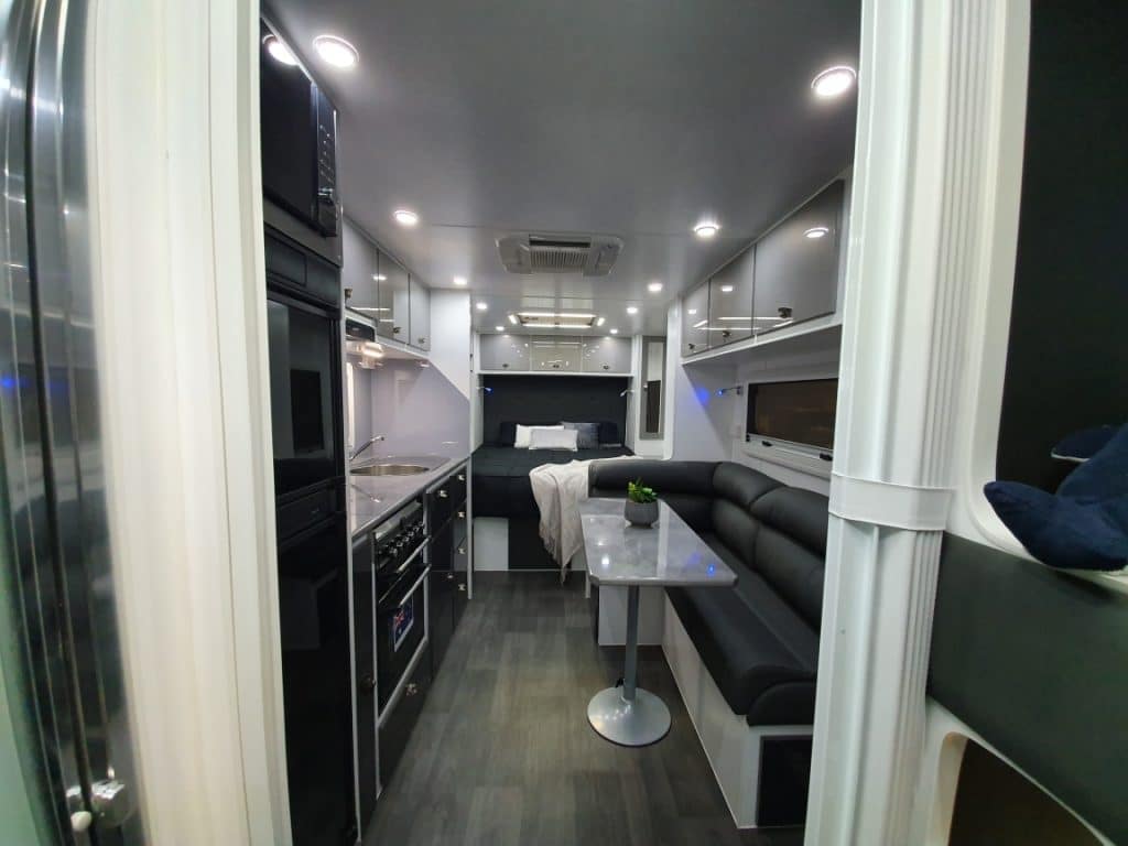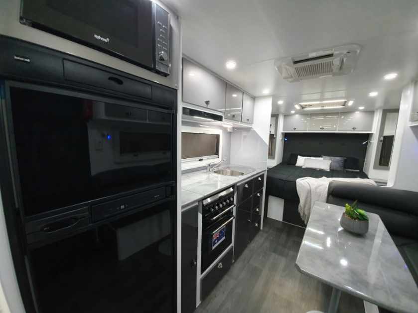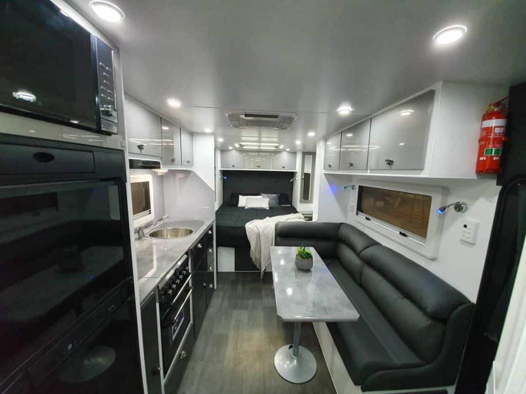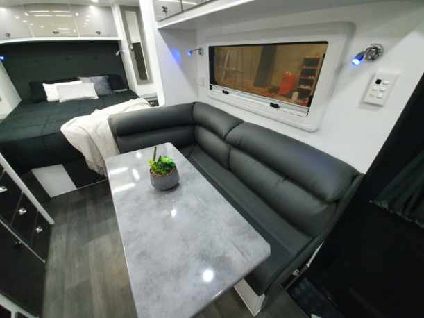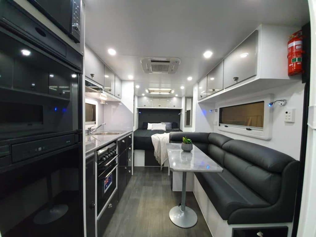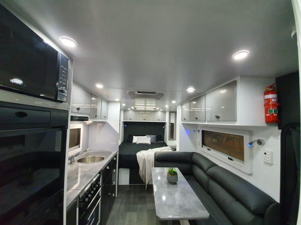 INTERNAL L-Shaped Lounge ÛÜ2 or 3 Bunk Beds Queen Island Bed Stainless Steel Single Bowl Sink Separate Shower and Toilet ÛÜPiano Hinges ÛÜShell Lock Handles ÛÜAcrylic Splashback ÛÜLaminate BenchtopsÛÜ APPLIANCES Oven ÛÜTouch Range Hood Microwave 184Ltr 3-Way Fridge/Freezer 20″TV Radio/DVD Player Ibis 3 Air Conditioner 28Ltr Gas/Electric Hot Water System 2.5kg Washing Machine ÛÜ |