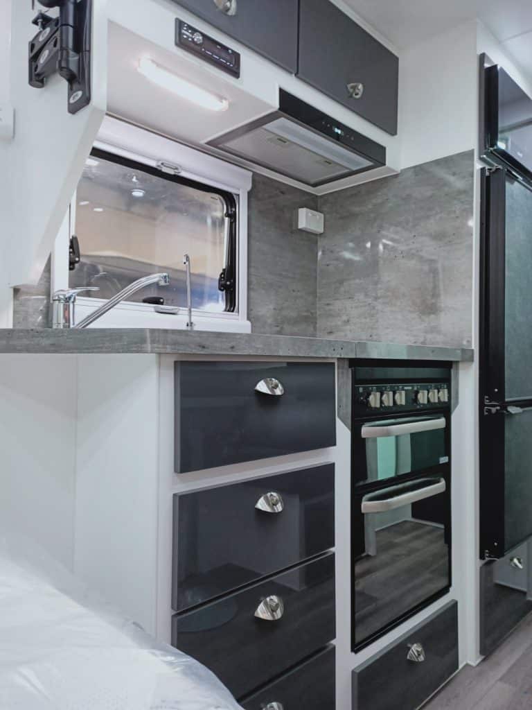 – Range hood (12v LED with Twin Fans)