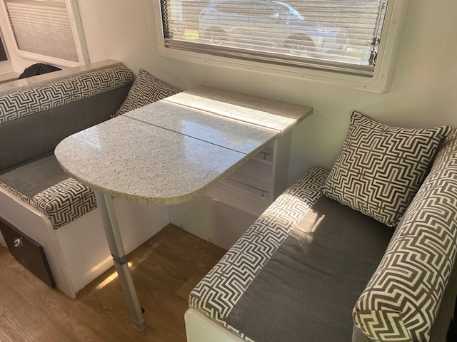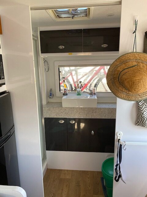 Cafe seating, Glass kitcken splashback.4 burner stove with grill( 3 gas 1 electric hotplates) Microwave, Theford 3 way fridge / freezer. Gas/ electric instantaneous heater, Air conditioner