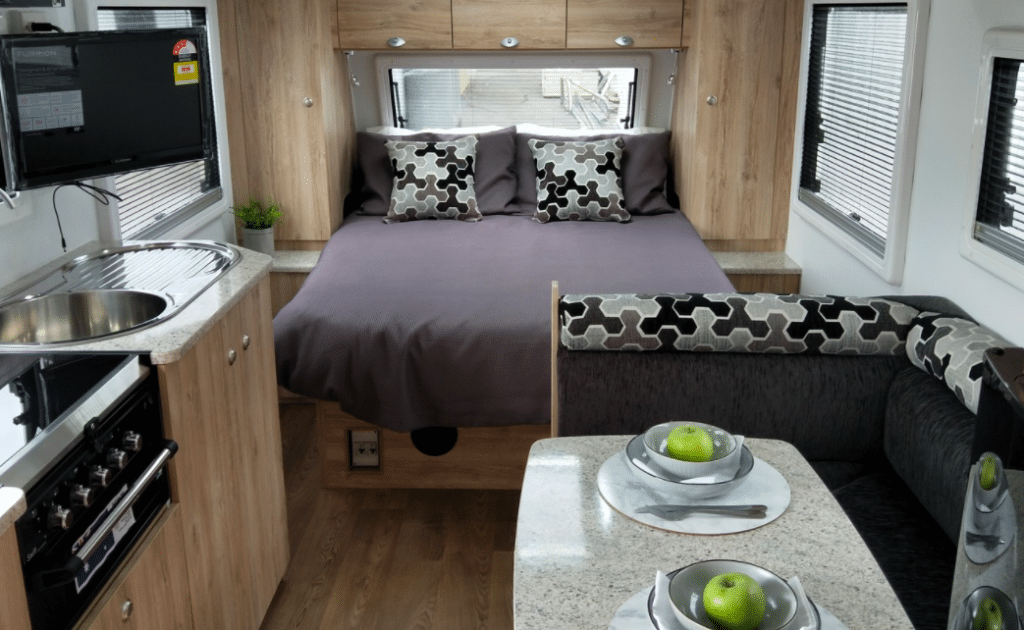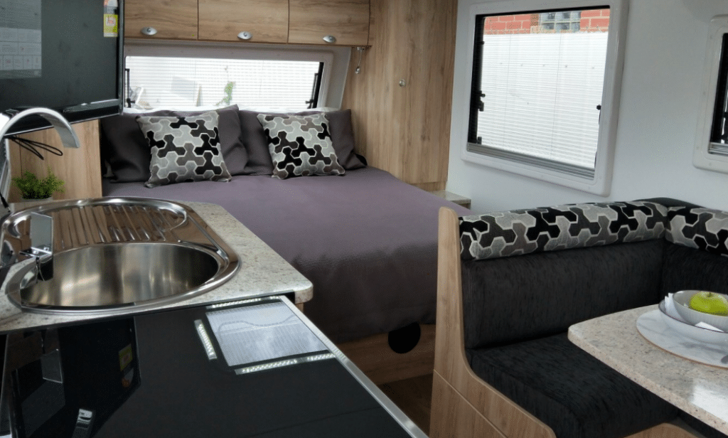 Featureing rear door access to L shape seating, Full rear ensuite, Side kitchen and front Island bed.