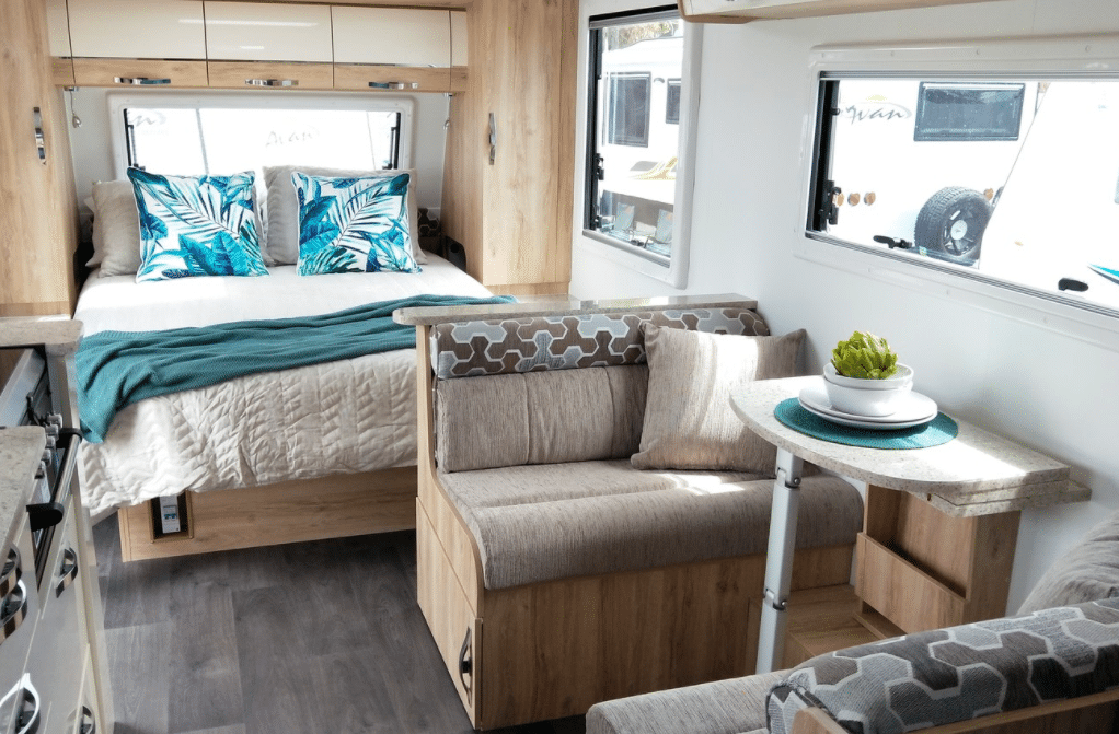 NEW RELEASE MODEL Aspire 572 Adventure 18ft Tandem axle with full rear ensuite & island bed. This size van is perfect for stability towing and roomy layout without going to big.