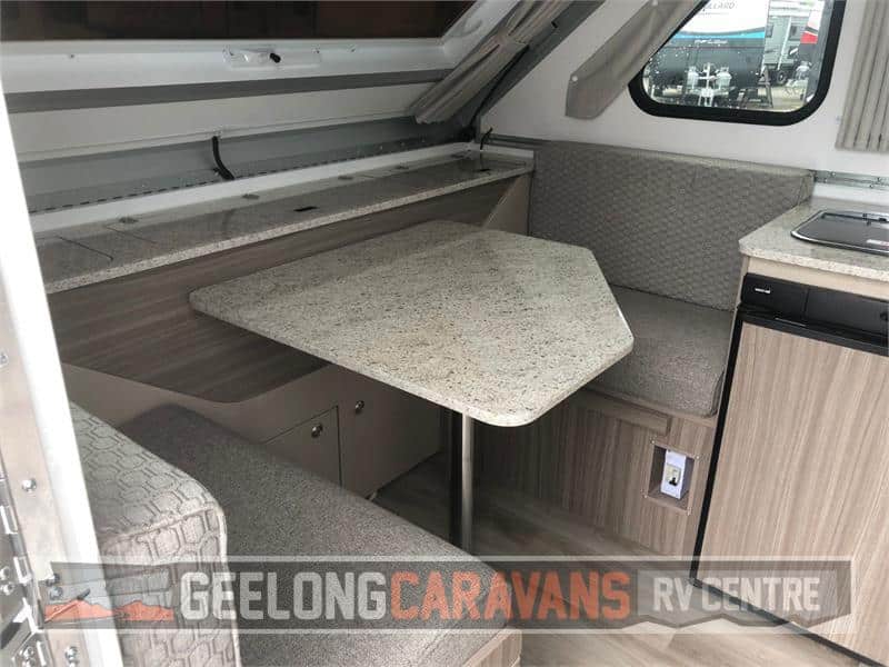 Adventure Pack upgrade / 1D Double bed layout with cafe seating / Sets up in less than 1 minute, fully insulated and durable construction.