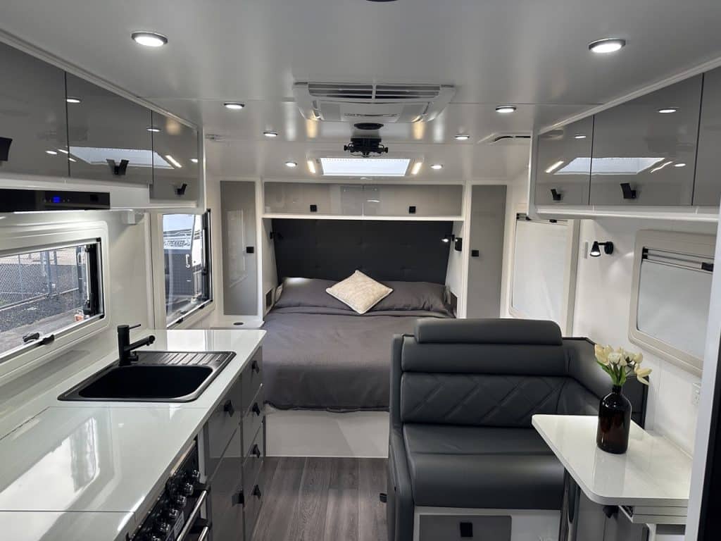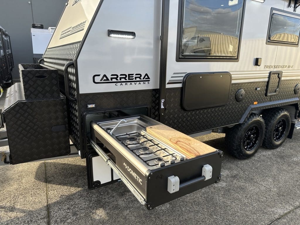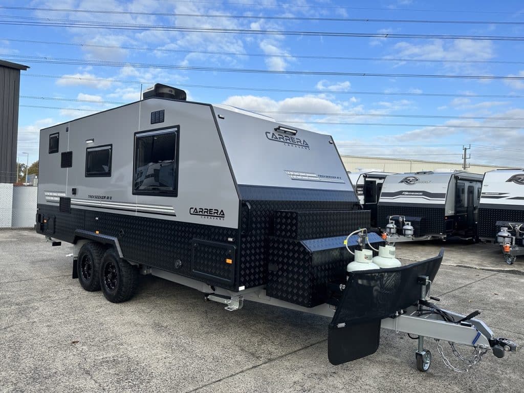 Introducing Carrera Caravans latest model the Trekseeker III-X. With an enhanced electrical setup the Trekseeker III-X includes a Victron 3000w inverter/battery charger, Victron Cerbo GX monitoring system with interactive display, Victron 30amp DC to DC charger, 400 amp hour of Powertech lithium batteries, Victron 50amp solar controller and 420 watts worth of solar panels.