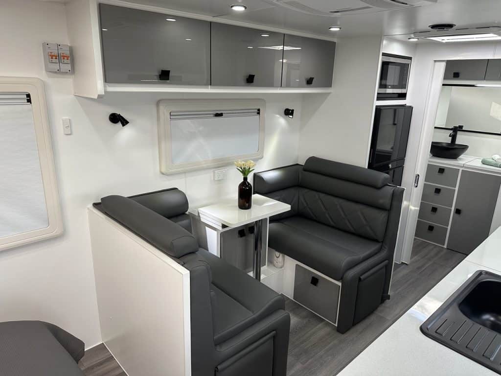 Cafe Dinette with Kick Up Foot Rests, Storage Drawers, Head Rests & Map Reading Lights