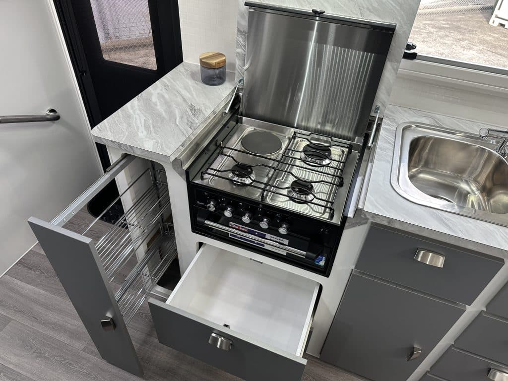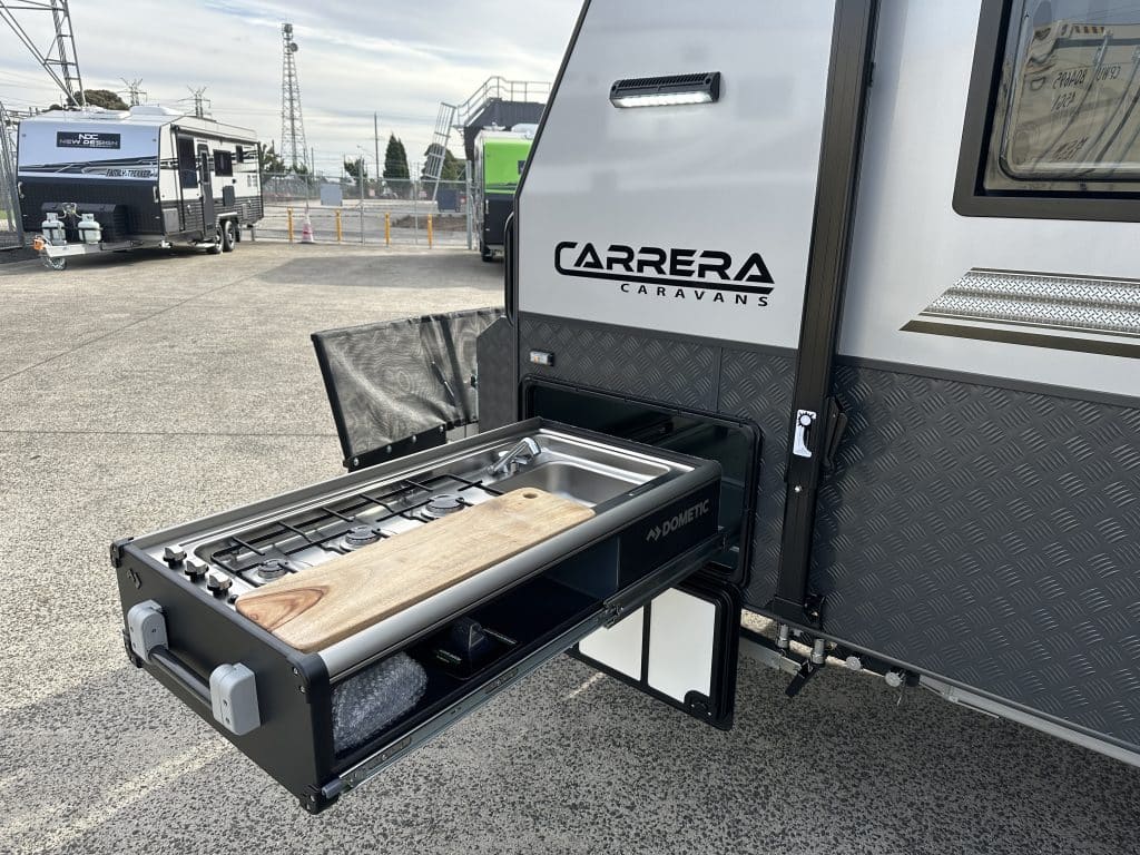 Dometic Slide-out Kitchen with 3 Gas Burners, Sink & Chopping Board