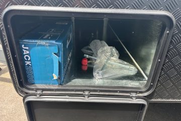 Large Powder Coated Checker Plate Toolbox with Slide-Out’s on Each Side & Top Mounted Woodbox