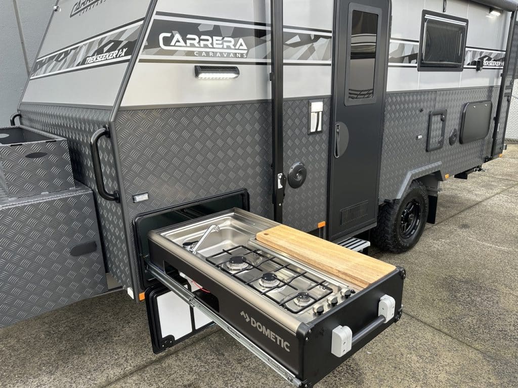 Dometic Slide-out Kitchen with 3 Gas Burners, Sink & Chopping Board