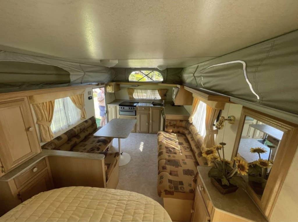 Beautiful older styled caravan pop-top for sale. Owner gone through separation and can no longer use. Basically, in brand new condition, never been off road and spent the majority of its life housed in a shed. Tandem Poptop with full Awning and Annex. All in perfect condition. Gas appliances, hardly used (cooked outside on BBQ) – in perfect condition.