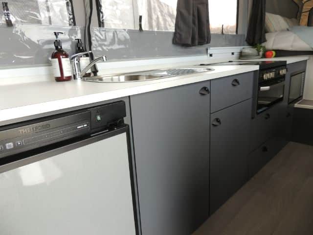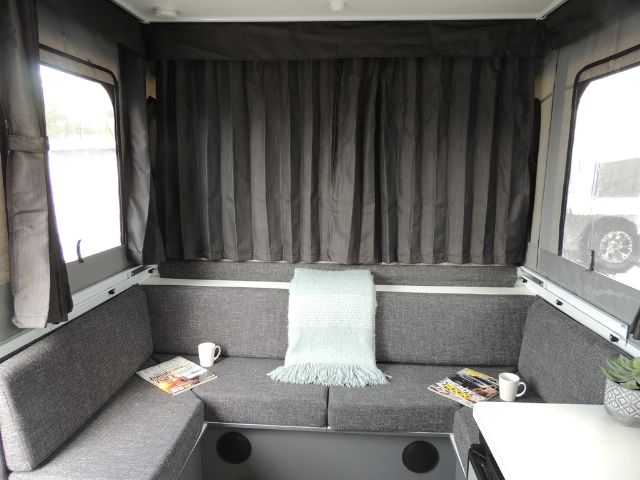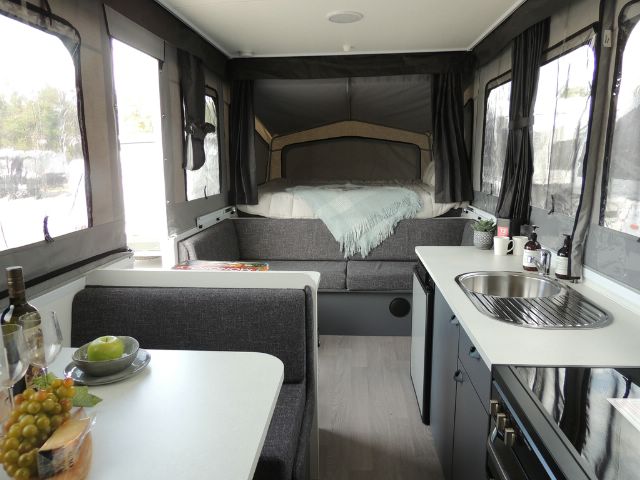 4-Burner Grill, 93L 3-Way Fridge, Ezy Slide Bed on Rollers, Slide-Out Pantry (most models), Fully Recessed Door Furniture, Large Drawers on Bearing Slides, Table to Bed Converter, Microwave (Except Wing 3 ST), Front Queen Size Bed, Ezy Glide Curtains, 12-Volt LED Roof Lights, 15mm Ply Furniture, 12-Volt Pump to Sink.
