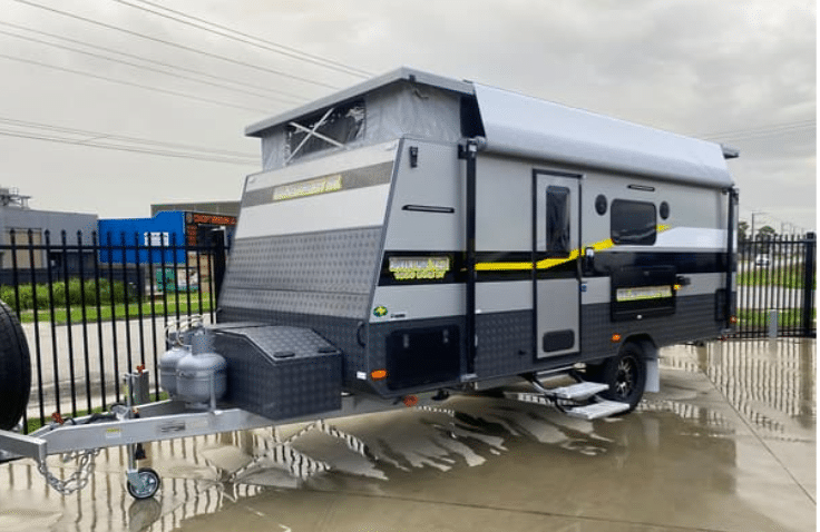 Recently added to our stock, this is our 1800 EWB ST ADVENTURE PACK. Equipped with an east/west front parents bed, a set of double bunks for the kids, an ensuite (shower and toilet combo) down the back and a large L-shape lounge for the family. The standard features in the Adventure pack are a roll out awning, ducted air conditioning, wind up antenna, radio/CD player, 1 x 85 watt solar panel, 100 amp hr battery, 2 x gas bottles, 2 x water tanks plus many more. Our model has been constructed with a pearl grey chassis and fitted with many other extras including grey walls, pearl grey checker-plate, upgraded 170 watt solar panel, instantaneous HWS an external shower, reverse camera, picnic table, 3 in 1 USB/TV/12V point, gas bayonet, extended A-frame, extra annex light, 16″ wheels and tyres, external speakers, 24″ TV and bracket, 1 x Sirocco fan. We are a proudly owned Australian company and have been building caravans since 1993. Our Australian made vans are made right here in Victoria. With over 28 years in the industry we have an extensive range of camper trailers, pop tops and caravans. Whether it’s for the road or the harsh Australian outback we have the right van for you. We are only 2 minutes from the freeway and less than an hour from the city. We also boast an extensive service centre that will attend to all types of brands including Jayco, Avan, New Age, Coromal, Franklin, Windsor, Millard, Concept and many more. Sales is open Monday to Friday 9-5 and Saturday 9-4. Service is open Monday to Friday 8-4 and 8-12 on Saturday. Both Manufacturing and Service Centre are fully RVMAP accredited.