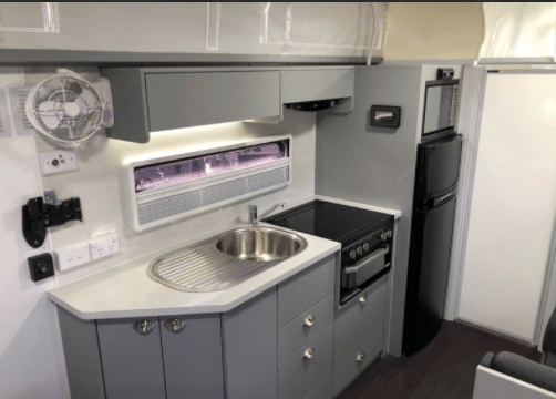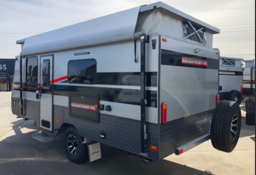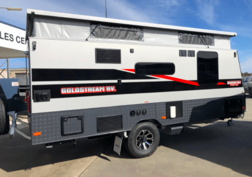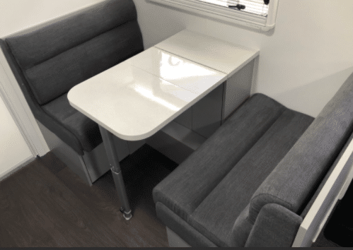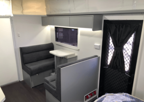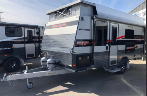 Fresh out of the factory, this is our 1760 series built in the Adventure pack. Constructed with a rear ensuite (separate shower and toilet) centre door and cafe seating it comes jam packed with extras. The standard features in the Adventure pack are a roll out awning, ducted air conditioning, wind up antenna, radio/CD player, 1 x 85 watt solar panel, 100 amp hr battery, 2 x gas bottles, 2 x water tanks plus many more. The added extras on this van are 16″ wheel and tyre upgrade, grey colored walls, pearl grey checker-plate, picnic table, 2nd annex light, 3 in 1 USB/TV/12V point, gas bayonet, reverse camera, 24″TV and bracket, upgraded 170 watt solar panel, Sirocco fan, cafe fold up table and an extended A-frame. We are a proudly owned Australian company and have been building caravans since 1993. Our Australian made vans are made right here in Victoria. With over 28 years in the industry we have an extensive range of camper trailers, pop tops and caravans. Whether it’s for the road or the harsh Australian outback we have the right van for you. We are only 2 minutes from the freeway and less than an hour from the city. We also boast an extensive service centre that will attend to all types of brands including Jayco, Avan, New Age, Coromal, Franklin, Windsor, Millard, Concept and many more. Sales is open Monday to Friday 9-5 and Saturday 9-4. Service is open Monday to Friday 8-4 and 8-12 on Saturday. Both Manufacturing and Service Centre are fully RVMAP accredited.