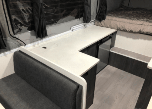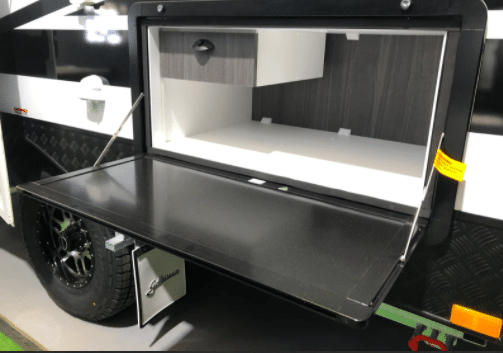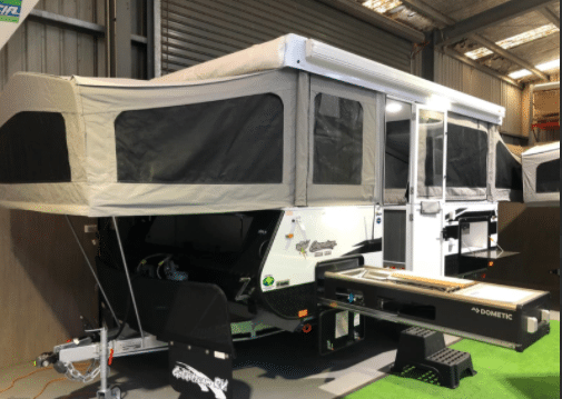 Fresh out of the factory, this new Thunder King Premium is ready to “take on” outback Australia. Equipped with the Premium pack this model has everything thing you need for an off-road adventure. The Premium pack includes extras such as the ALKO Enduro coil independent suspension, Dometic 3 burner slide out kitchen, deluxe stone guard with mud flaps, 170 watt solar panel, 2nd water tank, 2nd gas bottle, radio/CD/DVD package, 2 jerry can holders, Fiamma awning, 2nd Queen bed upgrade, picnic table, provision for A/C, gas bayonet, bed lights including fan, choice of checker plate colors among other items. This van has been fitted with more extras like the front king bed upgrade, an extra drawer under the seat, side to side table swivel, HWS and an external shower. We are a proudly owned Australian company and have been building caravans since 1993. Our Australian made vans are made right here in Victoria. With over 28 years in the industry we have an extensive range of camper trailers, pop tops and caravans. Whether it’s for the road or the harsh Australian outback we have the right van for you. We are only 2 minutes from the freeway and less than an hour from the city. We also boast an extensive service centre that will attend to all types of brands including Jayco, Avan, New Age, Coromal, Franklin, Windsor, Millard, Concept and many more.