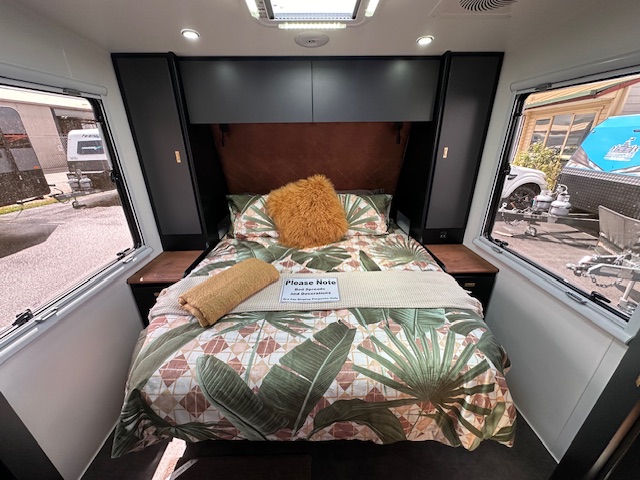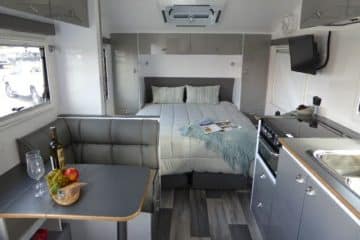 Highclere Caravans are designed to sit in line with today’s modern trends of contemporary caravans. Our vans are constructed with aluminium composite cladding (available in a range of colours) and then fitted with our exclusive decals. The van external features include a reverse camera, multiple solar, external lights featuring anti-bug glow, external speakers, gas bayonet, European windows, pull out step and much more. You and your family will be travelling Australia in the luxury and safety you deserve.