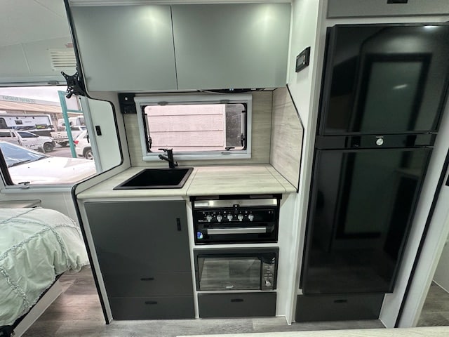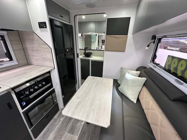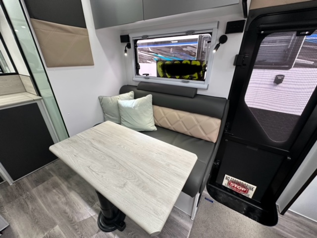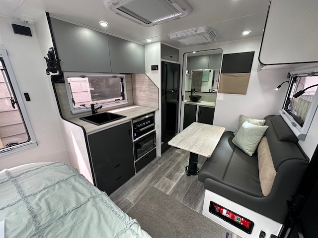 The impressive Little Cote is a compact caravan that packs quite a luxurious and spacious interior. Fitted with a queen bed, L-Shaped Lounge with a Nuova Mapa Telescopic & adjustable Table, & full ensuite. The Little Cote is fitted with a reverse cycle A/C, microwave, full oven, reading lights with USB ports and premium tapware and accessories. Don’t forget the entertainment system and Smart TV setup for the winter nights in the outback. Travel in confidence with the all-new Little Cote.