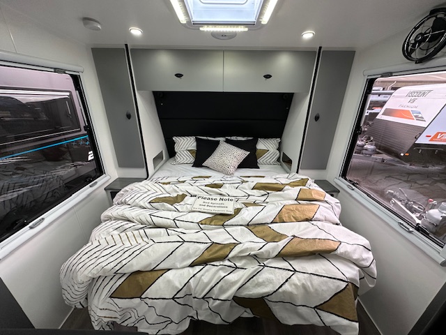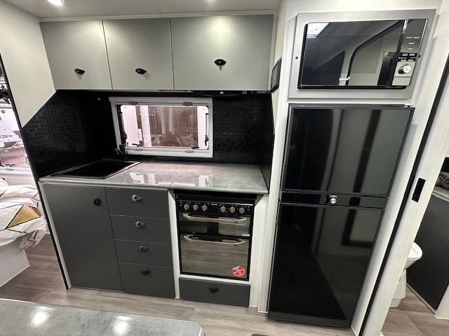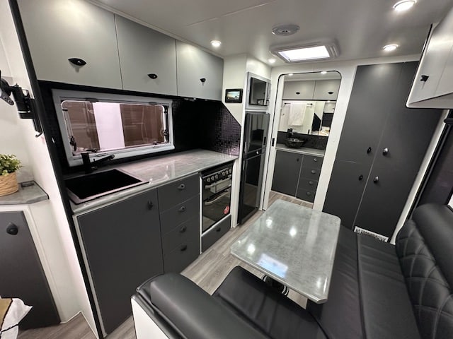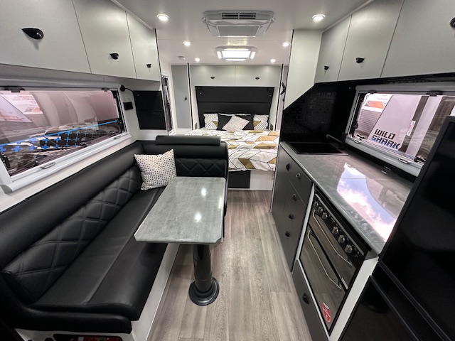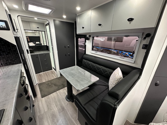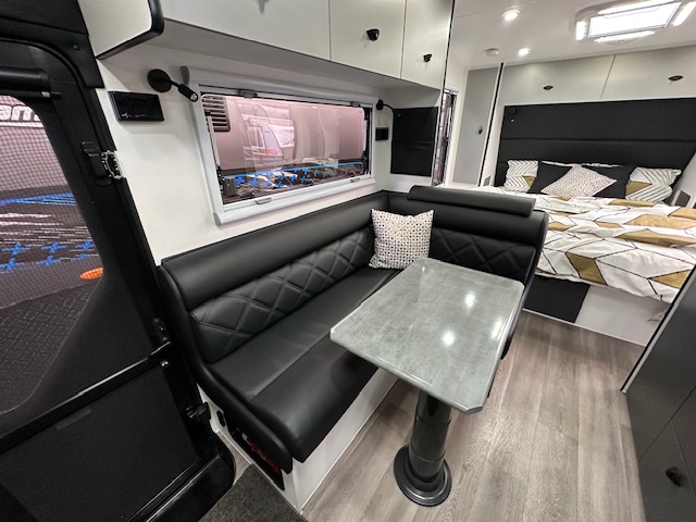 The impressive Little Cote is a compact caravan that packs quite a luxurious and spacious interior. Fitted with a queen bed, L-Shaped Lounge with a Nuova Mapa Telescopic & adjustable Table, & full ensuite. The Little Cote is fitted with a reverse cycle A/C, microwave, full oven, reading lights with USB ports and premium tapware and accessories. Don’t forget the entertainment system and Smart TV setup for the winter nights in the outback. Travel in confidence with the all-new Little Cote.