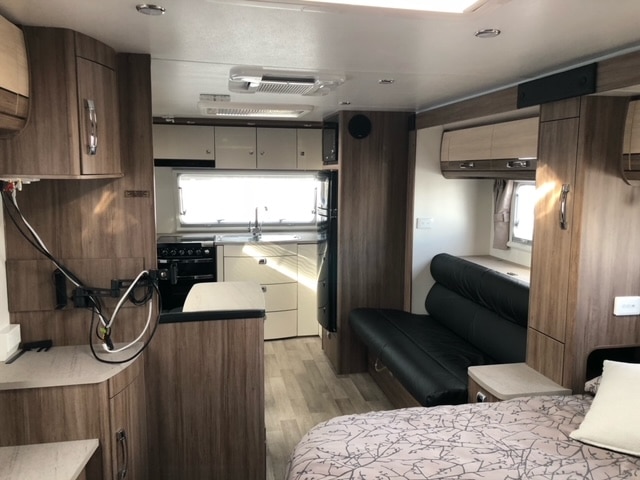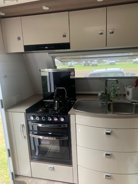 It is a very luxurious van with shower & toilet, satellite dish, full annexe and much more. The double slide out has a 2.5 seater leather couch as well as the queen bed. It has two solar panels and two 100 amp batteries making off grid living easy with a grey water tank and 2 x 82 litre fresh water tanks.