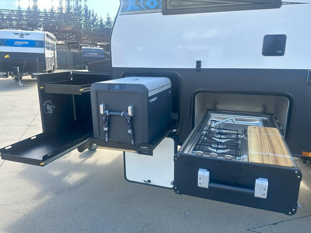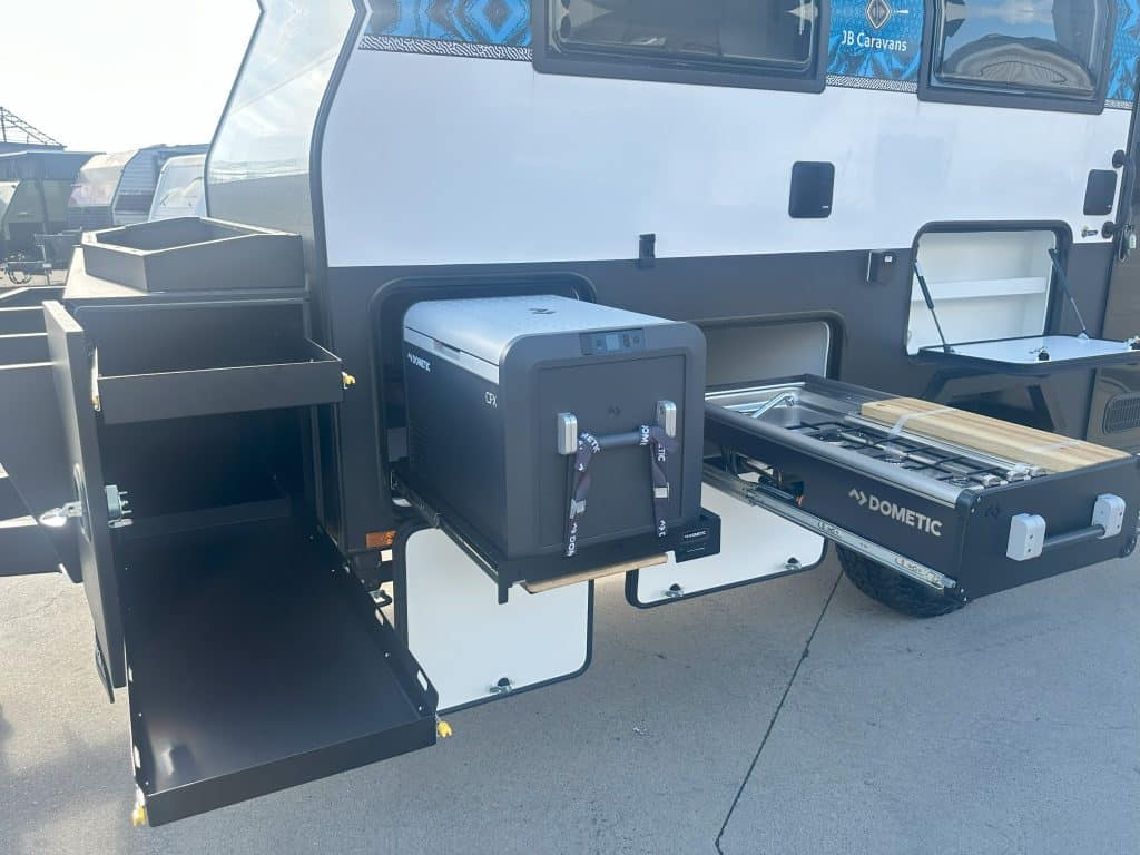 – Dometic slide out kitchen (3 burner)