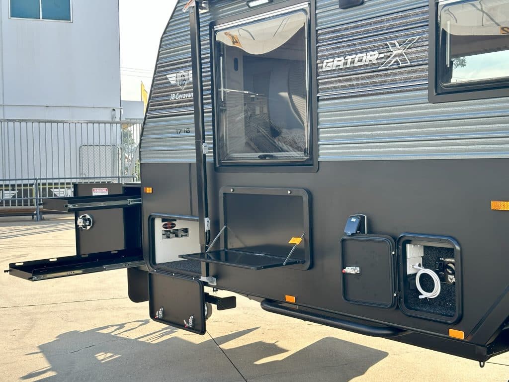 – New 2025 Raptor Coated Toolbox with built in stone guard and wood box and Slide Out Drawers for your gas bottles and fridge/BBQ slide so you can organize and access your gear with ease.