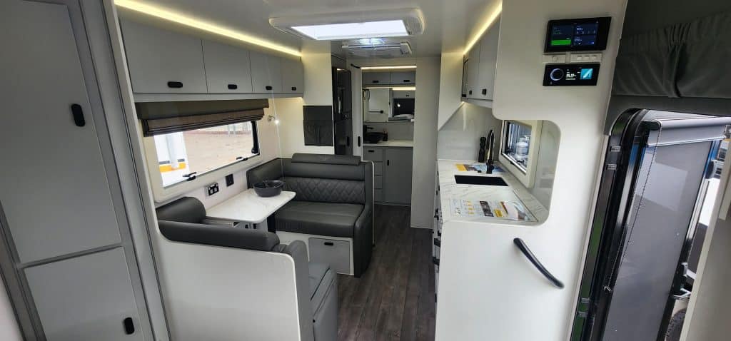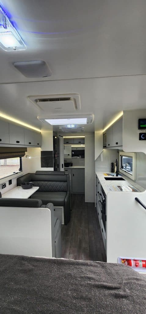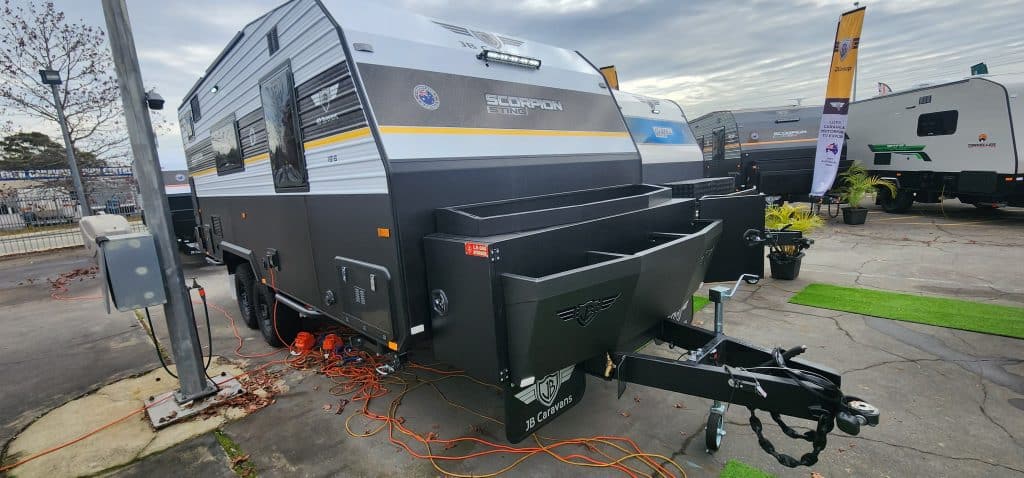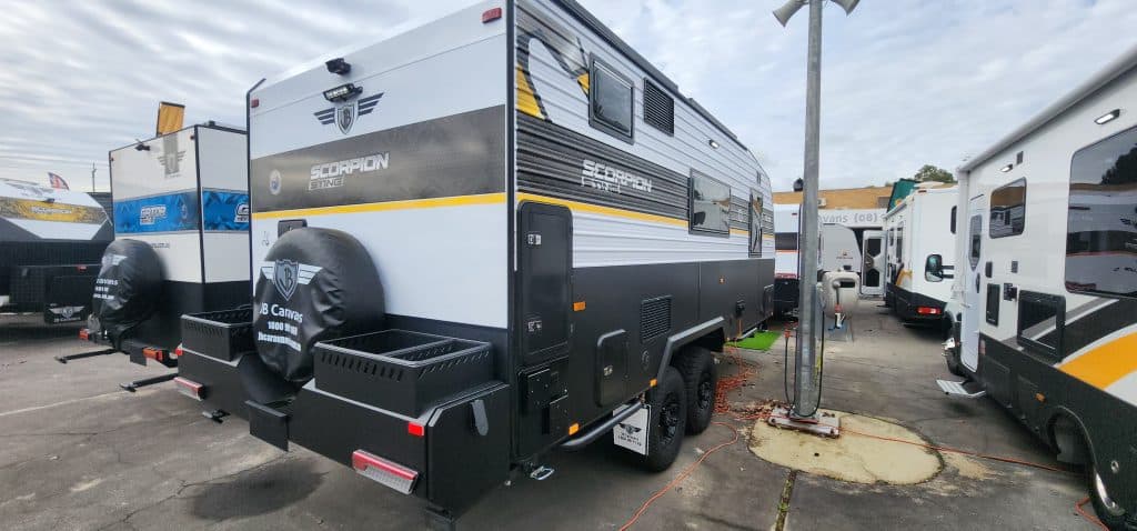 It’s here! Yes, the all new 2025 model Scorpion Sting 19’6 has arrived, boasting new internal and external features, we’re sure you will love these new features so why not come on down to the yard and a look for yourself. New 2025 features: * New design toolboxes front and rear. * Gone has the checker plate and replaced with smooth Duratec Black Powder coated Aluminium * New internal house lighting * Gone has the bulkhead lighting, now replaced with strip lighting * Gone has the timber framework and replace with Poly resin frame (recycled plastic and resin) Standard features: * 5Kw (416amp/hr) Eco Flow battery system * 3600w Inverter * 300w AC Charger * 1000w DCDC Charger * 5 x 200w solar panels (24V) * EcoFlow Intergrated water gauges – all in one screen * 2 x 110L water tanks, 1 x 110L grey water tank * Dometic dust reduction system * External slide out kitchen * And much more…. To view the new 2025 Scorpion Sting 19’6 drop in to our yard at 28 – 32 Brookland Street Beckenham, Paul, Wayne or Steve will be happy to show you around, like to know more? then call Wayne 0422 471 579 or Steve E 0419960121 or Paul 0450 366 811