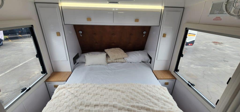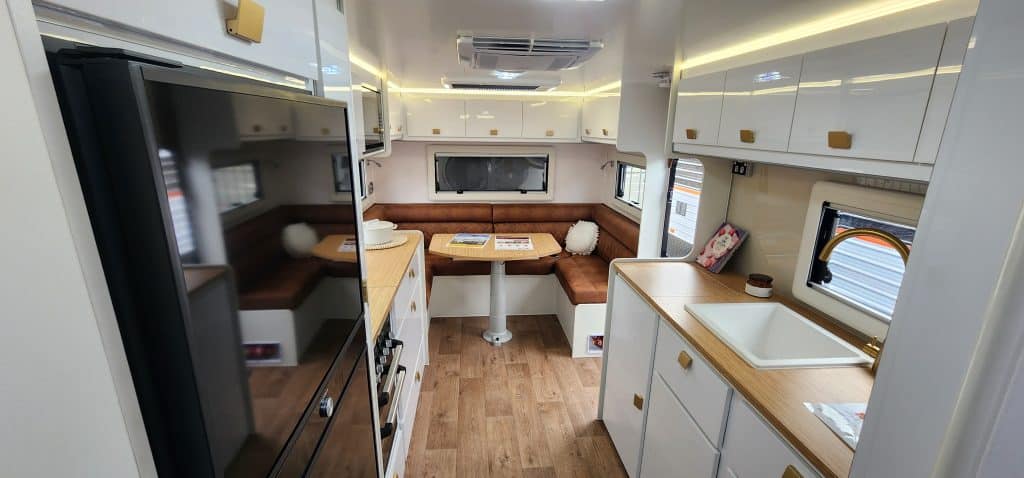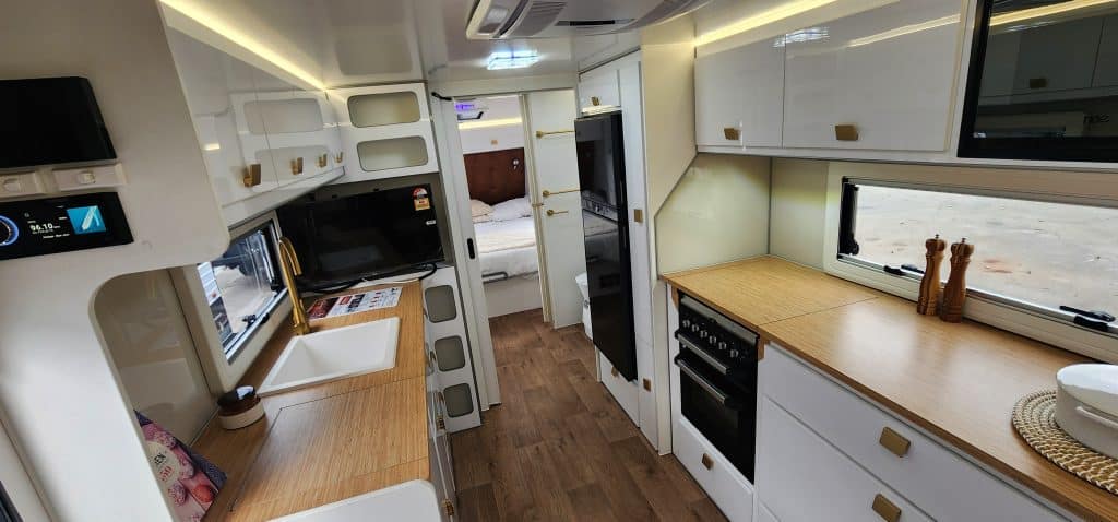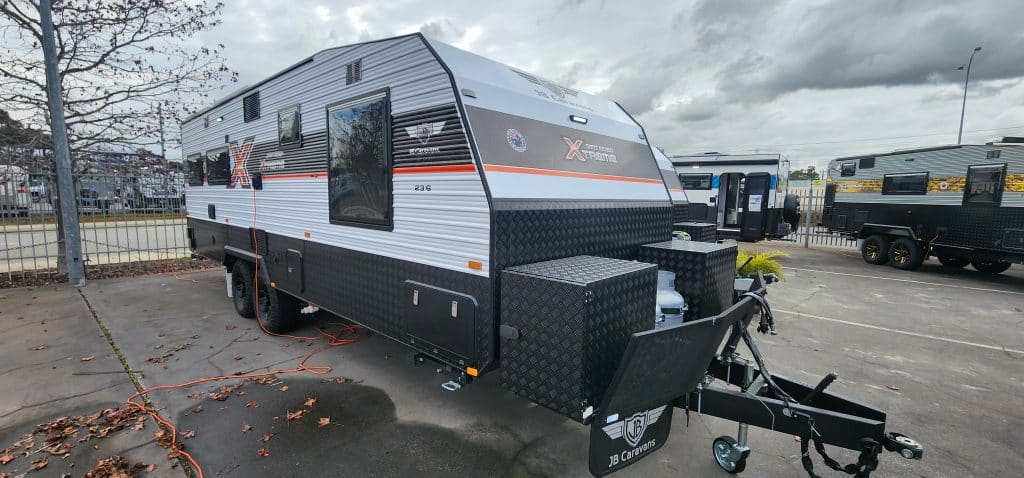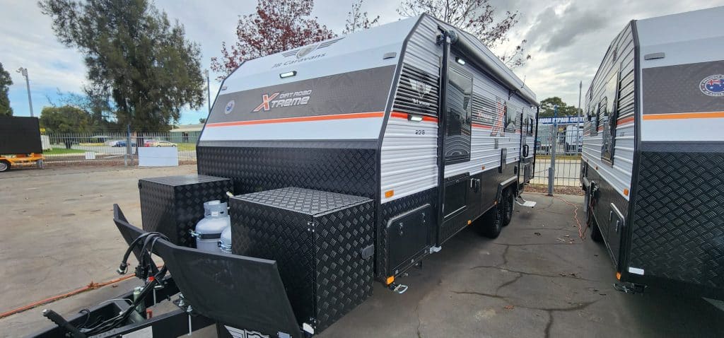 Looking to get off road and off grid exploring our great state and country, the 2025 Dirt Road Xtreme 22’6 FD Rear Door Club Lounge caravan was built to do just that, there’s no better way to explore the places that not everyone can get to and in style and luxury. The Dirt Road Xtreme has enough power (4kw) to keep you off grid for weeks on end. The Dirt Road Xtreme has the following standard features. For Comfort * Full leather seating * Gas cooktop & Gas oven * Dometic FreshJet reverse cycle air conditioner * Sirocco fans – 3 speeds and 12hr timer * 190L Dometic compressor fridge * Washing machine Power features * 4kw Eco Flow battery system 48 volt (equivalent to 333amp/hr lithium battery) * 2600w inverter * 3000w charger * 1000w DCDC charger * Up to1600w solar input * 2 x 200w solar panels Other features * 2 x 110L and 1 x 110L grey water tank Suspension * Dual axle Cruisemaster 3.7T suspension * 4″ Chassis and 6″ A-frame + 2″ raiser * 16″ off road tyres and rims Plus, there’s more… To view the new 2025 model Dirt Roader Xtreme 22’6 Rear Door Club Lounge drop in to our yard at 28 – 32 Brookland Street Beckenham, Wayne, Steve or Paul will be happy to show you around, like to know more? then call, Wayne 0422 471 579, Steve 0456 884 457 and Paul 0450 366 811