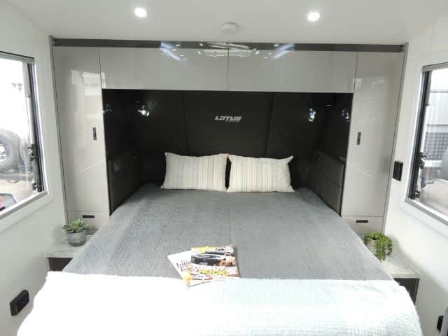 Lotus Caravans, in partnership with industry leader G&S Chassis, has designed a revolutionary truss system galvanised chassis which helps cut weight to allow increased durability for this off-road beast. Control Rider Twin Shock Suspension and upgraded Gabriel shockers handle every bite from the landscape while the disc brakes deliver optimum performance in the most difficult terrain. BF Goodrich’s toughest all-terrain tyres finish off this robust van.