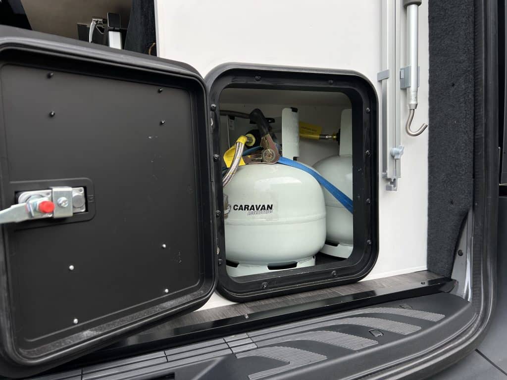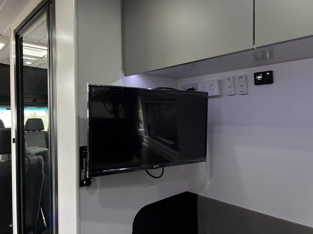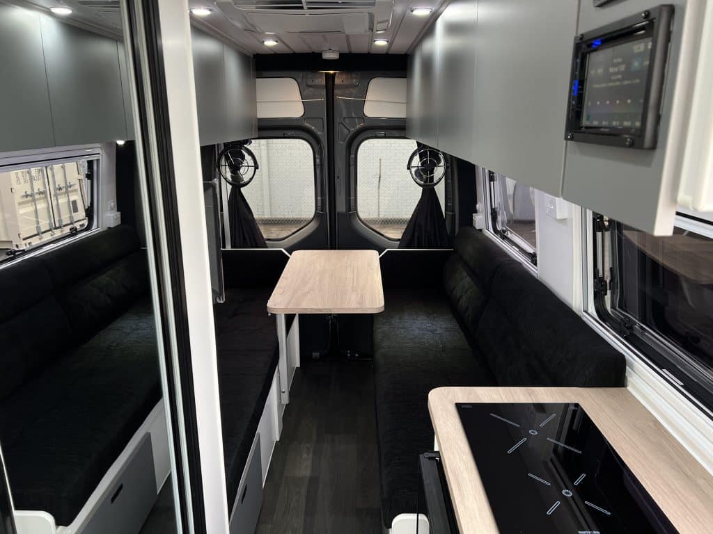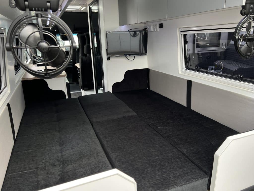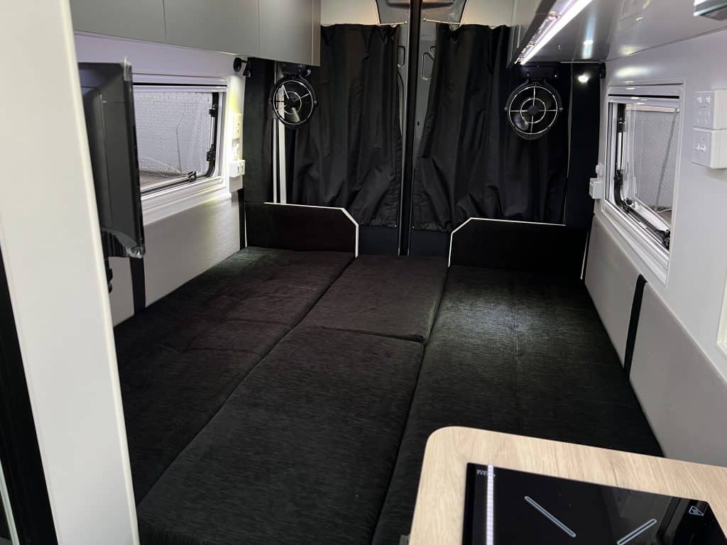 Large seating area with map reading lights, USB/USBC Ports, LED strip lighting, double power points & privacy curtains