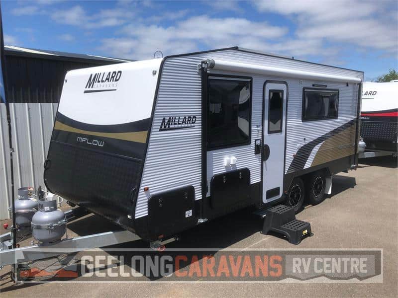 Millard’s exclusive “Highest quality Hybrid construction” featuring Australian BlueScope steel chassis(3mm thick), hot dipped galvanised, leaf suspension , full Aluminium frame 25mm with high tensile rivets and full length intermediate transom for added strength and rigidity, Full Styrofoam insulation, Solid one piece (front to back) composite roof that cannot leak and is strong enough to walk on all giving you a light weight caravan with maximum durability.