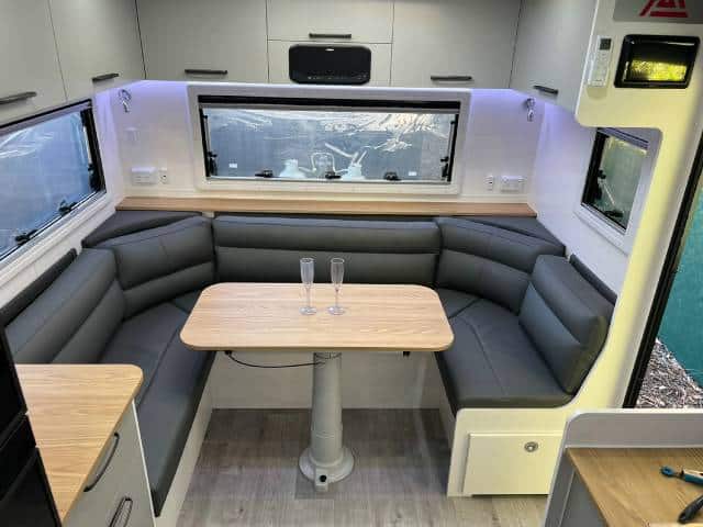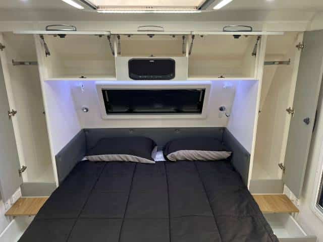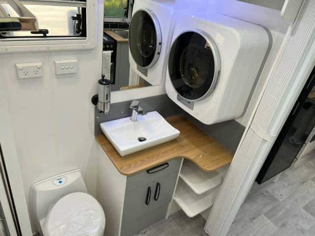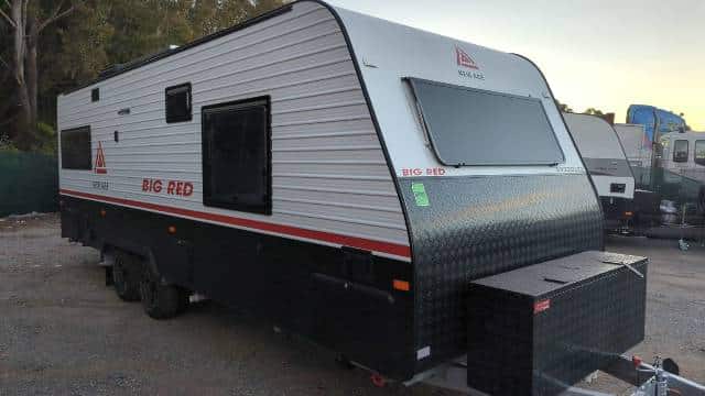 The stylish Big Red 22 incorporates a new Fusion entertainment system, sleek exterior and LED strip lighting through to internal features including full en-suite, large fridge, fully functional stylish kitchen including ceramic microwave, front loader washing machine and USB inputs throughout.