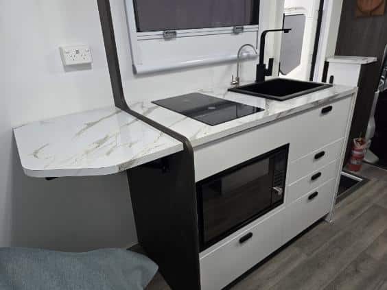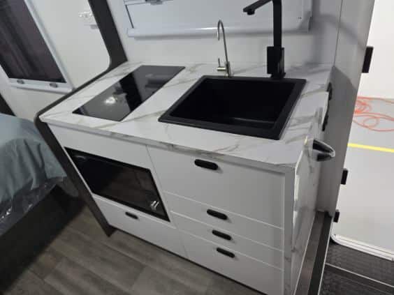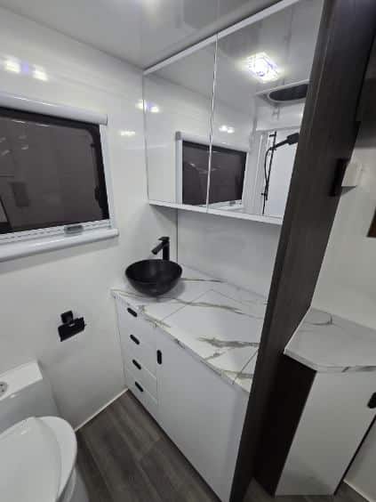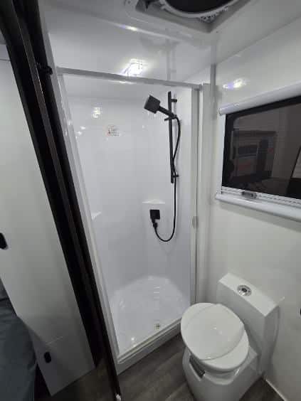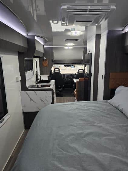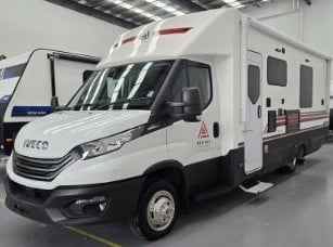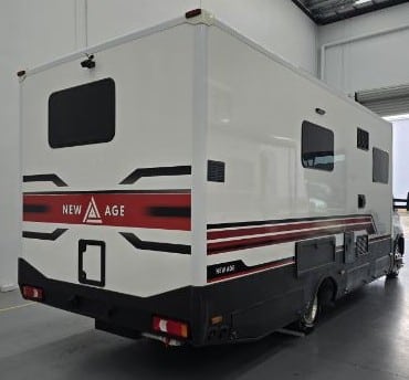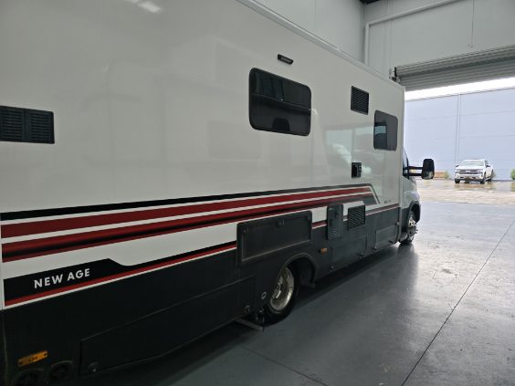 Get ready to experience the freedom of the open road like never before with our latest innovation in touring motorhomes. The New Age NAM8 is not just a motorhome – it’s a complete travel experience, now available! Built on a durable Iveco Daily 50 180 cab-chassis, this 7.9-meter long beauty boasts a powerful 3.0-litre turbo-diesel engine with 132kw and 430Nm, offering the perfect balance of power and efficiency. Designed for easy handling, it’s licensed for a standard car license with a GVM of 4495kg (upgradeable to 5200kg), making it an ideal choice for any adventurer. Crafted with premium materials, the New Age NAM8 features full composite fibreglass construction – including seamless one-piece panels for the floor, walls, and roof – ensuring a smooth, modern profile that is as stylish as it is durable. Off-grid camping? No problem! The NAM8 comes standard with a 48V EcoFlow setup, featuring two 2kW lithium batteries, 3600W inverter, and 600W rooftop solar panels, providing all the energy you need to explore off the beaten path. With 200L fresh water and 75L grey water capacity, you’ll have all the amenities you need, wherever you go. Step inside, and you’ll find a luxury, couple-friendly layout that combines comfort and functionality. The queen-sized bed (with a pillowtop mattress and generous under-bed storage) and spacious rear ensuite with a large shower and washing machine offer ultimate relaxation after a day of adventure. Prefer twin beds? We’ve got that too! Choose from a range of interior configurations, including a dinette/lounge area for ultimate flexibility. The kitchen is a dream for any cook, with a twin hob induction cooker, 224L fridge/freezer, microwave, and a sleek granite black kitchen sink. Entertain in style with two 24-inch Smart TVs, an audio system with six speakers, and enjoy the outdoors with a powered awning and picnic table. The motorhome also features genuine leather seating, soft-touch finishes, and premium European-style CNC furniture for that added touch of elegance. And for those who demand the best, the New Age NAM8 offers a range of high-end features like leather-upholstered seating, sound-isolating felt-backed vinyl flooring, and multi-locking cabinetry systems. Ready to hit the road in style? The New Age NAM8 Motorhome is your ticket to the ultimate luxury adventure! Contact us today! Interstate freight and finance available upon request.