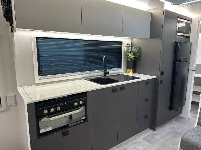 While the MY24 Manta Ray Adventurer range already includes a huge list of off-grid features, such as the XT suspension, two 100ah AGM batteries, 200w solar panel, recessed cooktop, the Expedition range takes it to a new level.