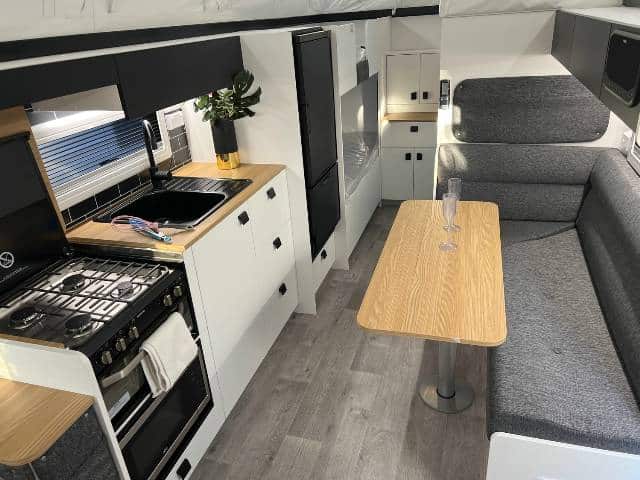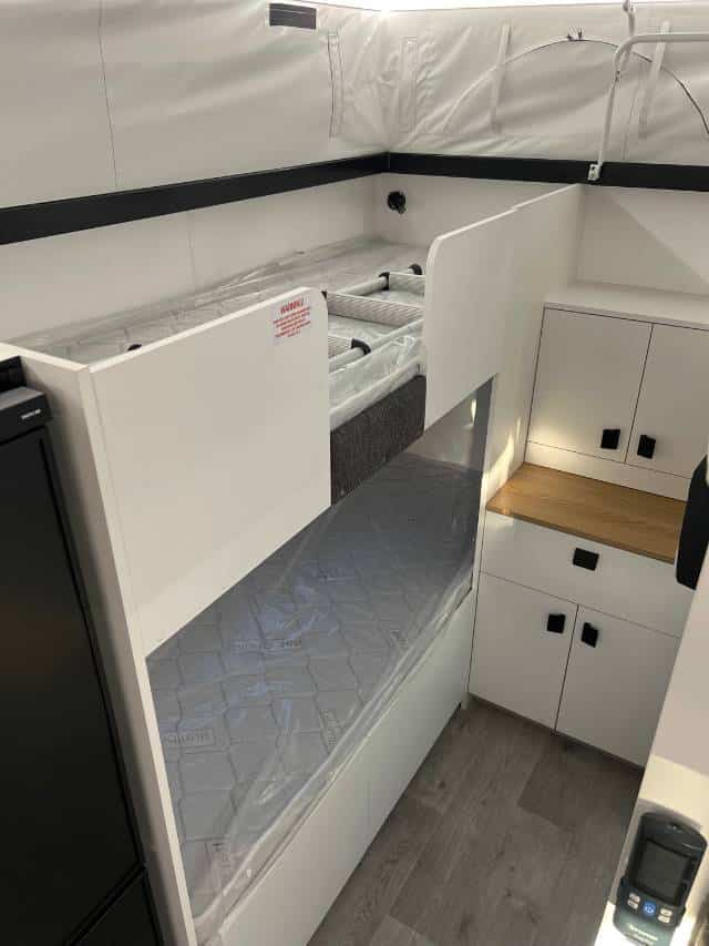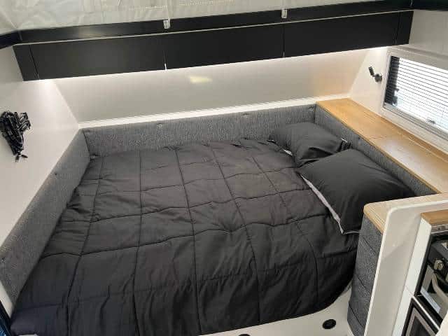Standard with Cruisemaster XT full heavy duty independent suspension, toolbox, DO-35 hitch, 16″ wheels, 2 x 110 a/h batteries, 200w solar panel, 2 door fridge / freezer, aircon under the bed, full ensuite and lots more…. All backed up with the New Age 3 year bumper to hitch warranty.