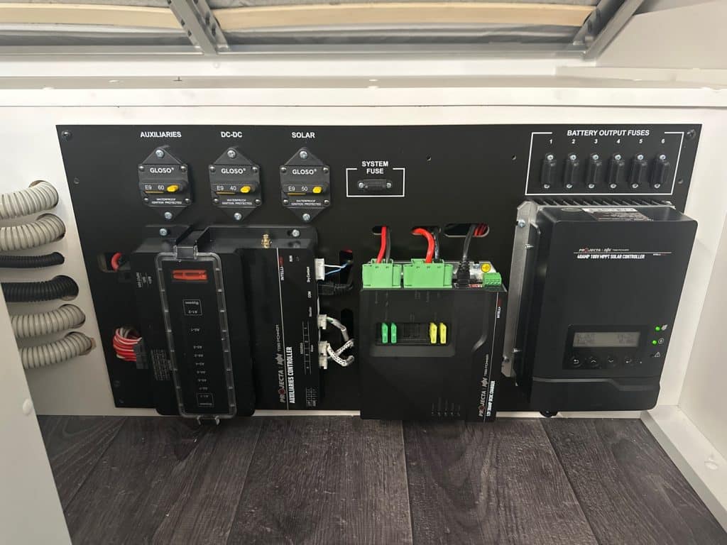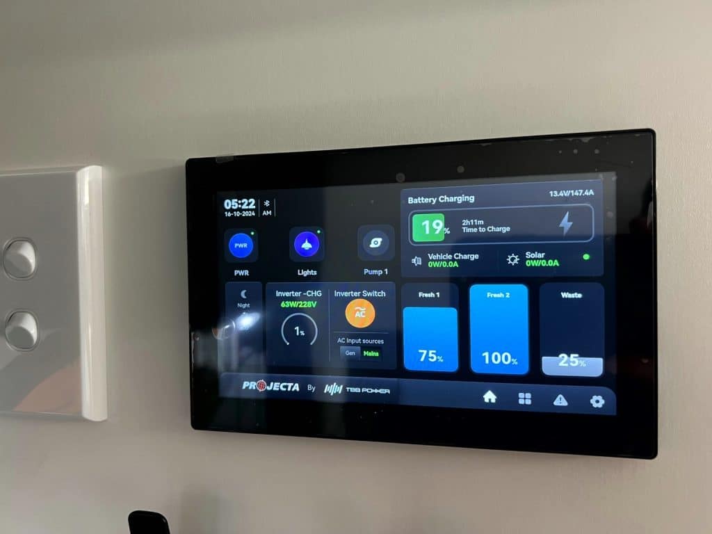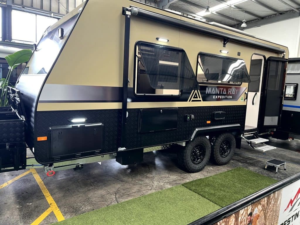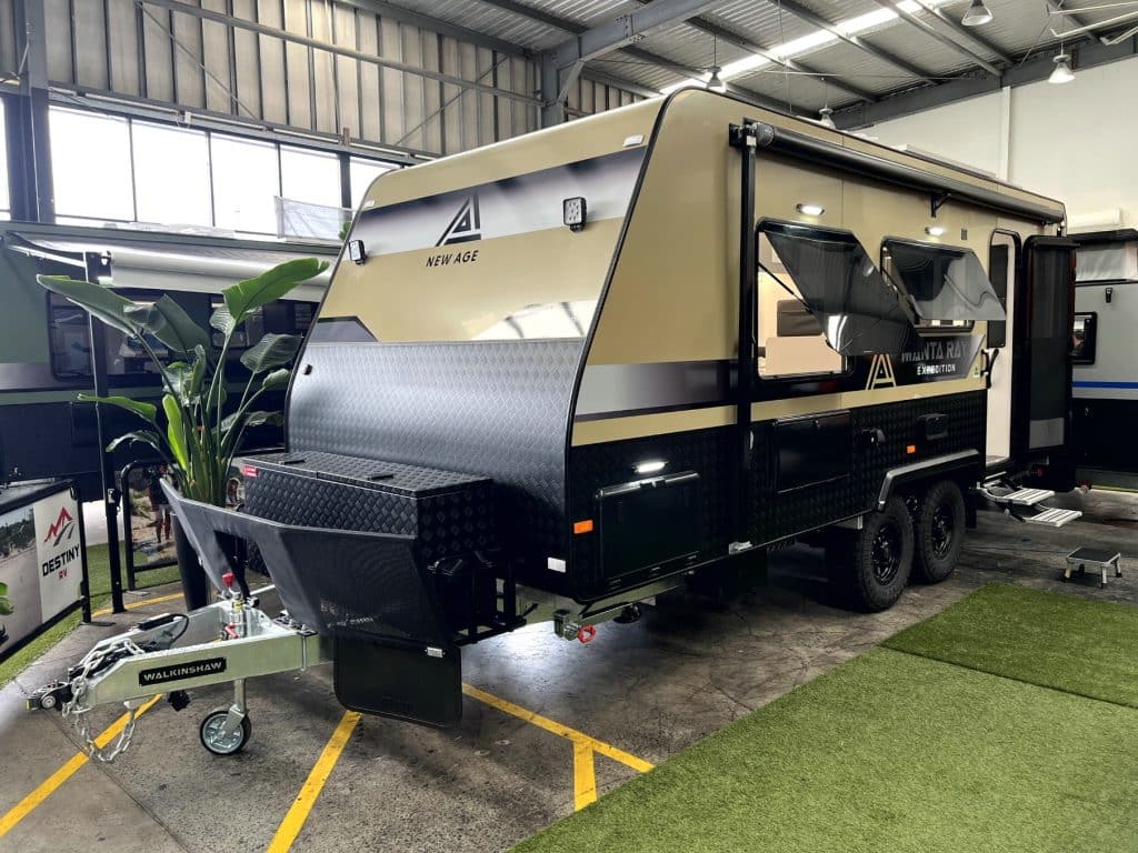The New Age Manta Ray 18ER Expedition is a limited edition model released for those super adventurous travellers who like to be off grid – This van has been upgraded with the PROJECTA IG COMPACT 70 power management system which includes a 400 amp/hr lithium battery, 4 x 200w solar panels, 3000w inverter and 40amp MPPT solar contoller.