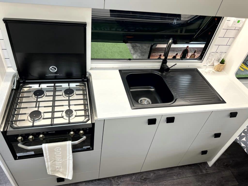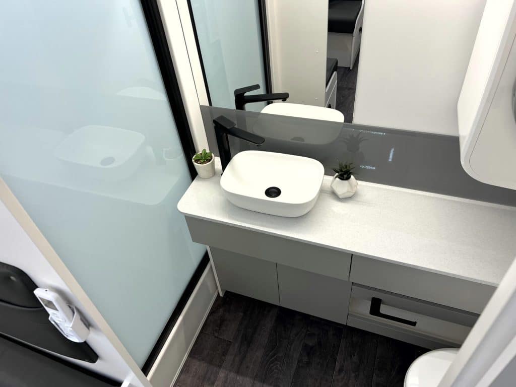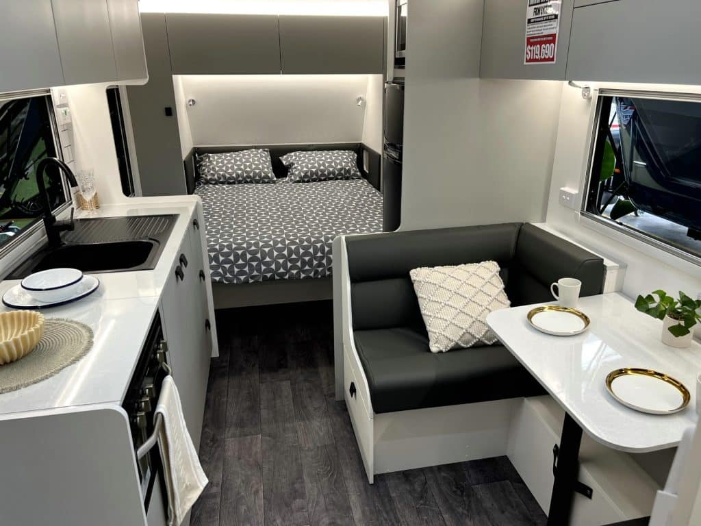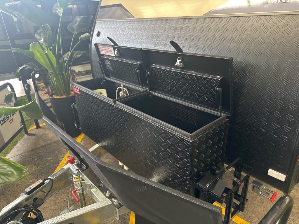 The New Age Manta Ray 18ER Expedition is a limited edition model released for those super adventurous travellers who like to be off grid – This van has been upgraded with the PROJECTA IG COMPACT 70 power management system which includes a 400 amp/hr lithium battery, 4 x 200w solar panels, 3000w inverter and 40amp MPPT solar contoller.