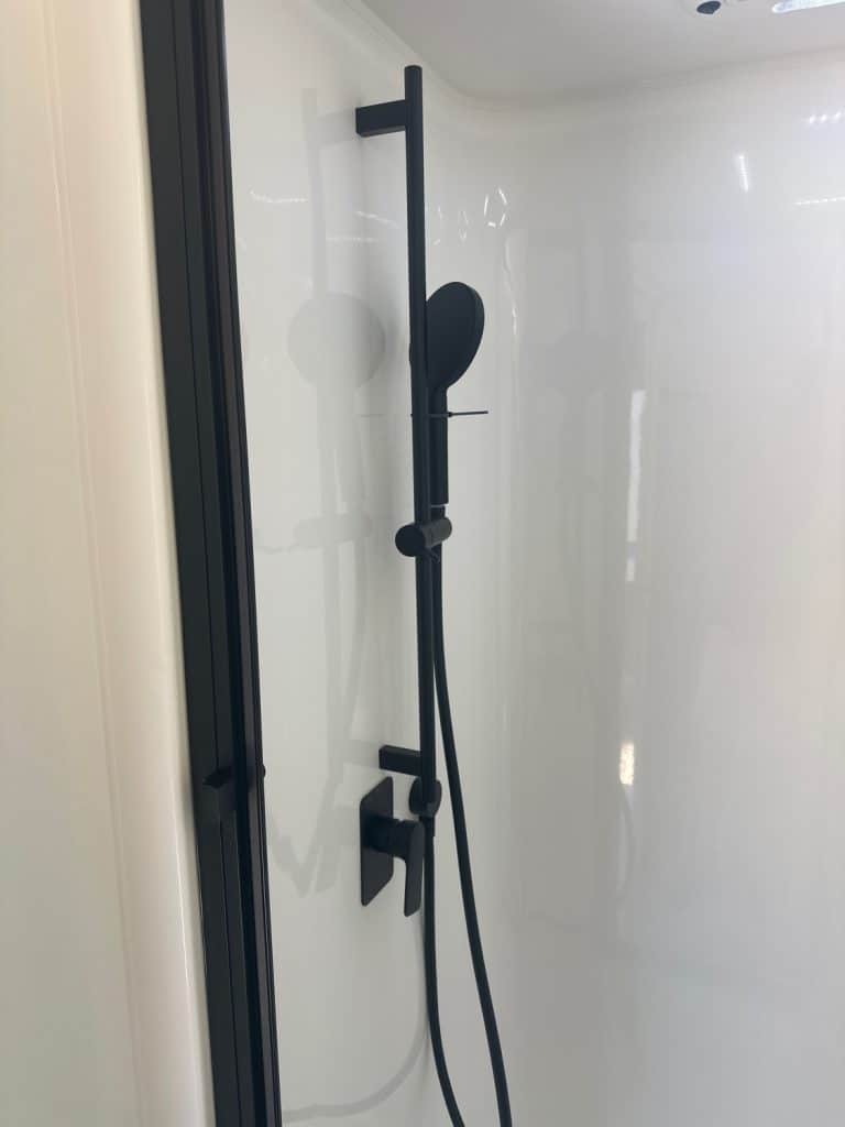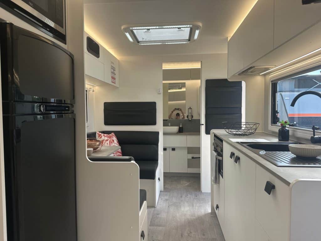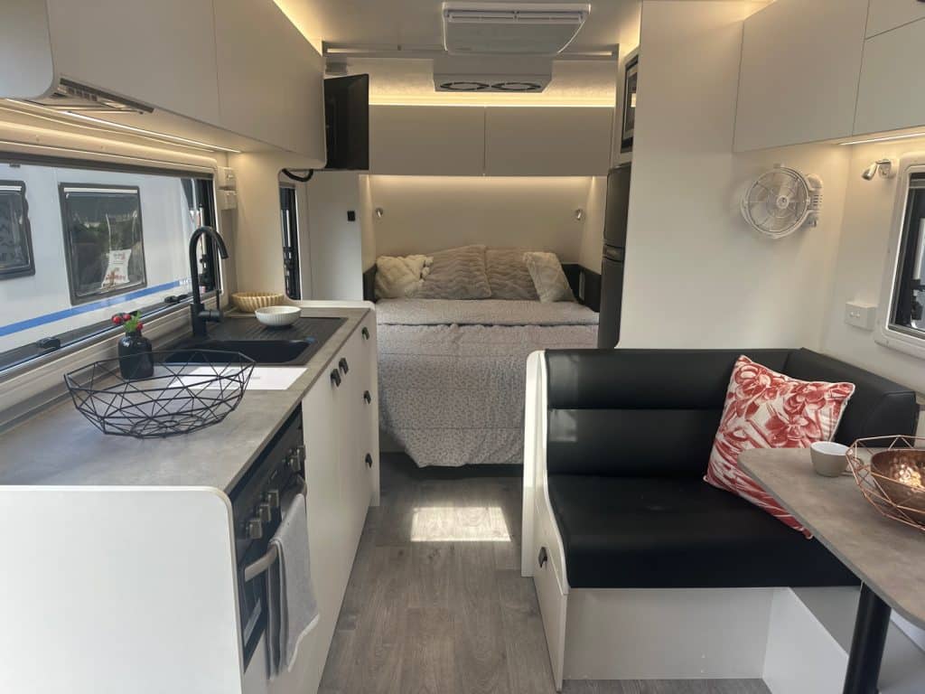 As a standard feature, each caravan comes furnished with an ensuite featuring shower and toilet, fully equipped kitchen, and spacious layout design.