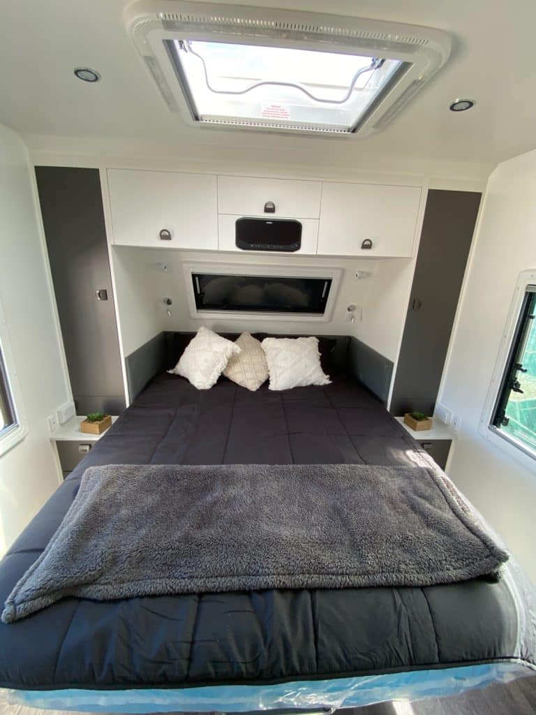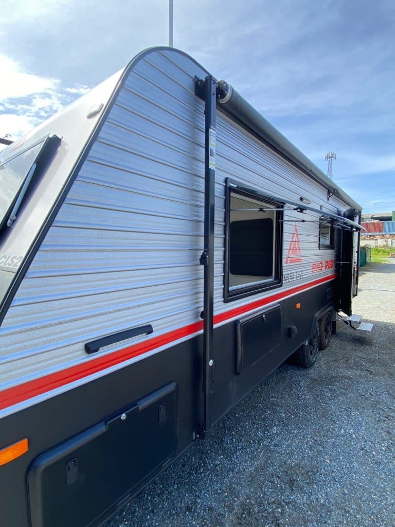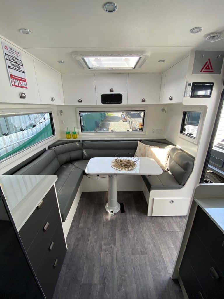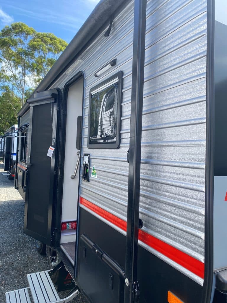Designed as one of our flagship caravans, the layout has the big comfortable rear club lounge with leatherette trim, center ensuite and seperate bedroom at the front of the van.