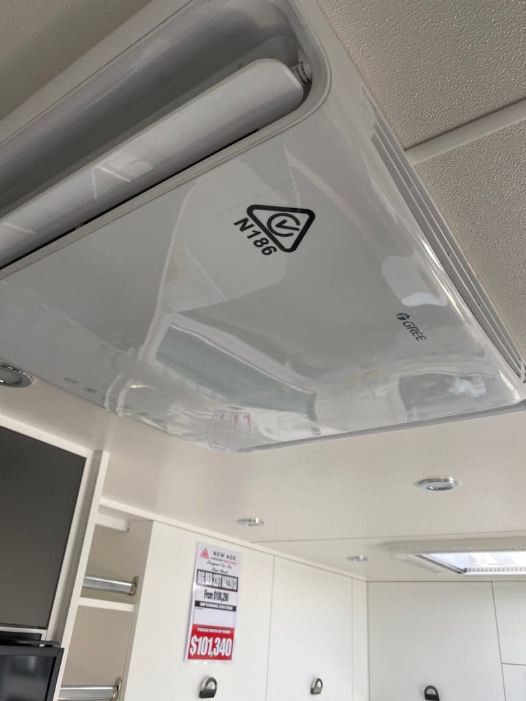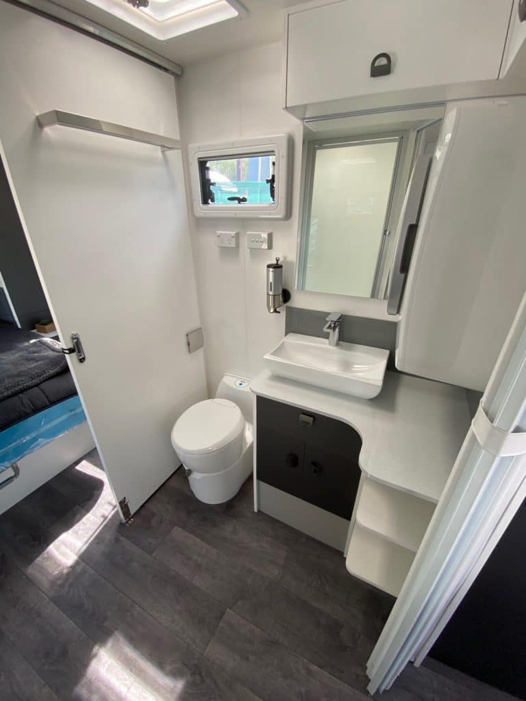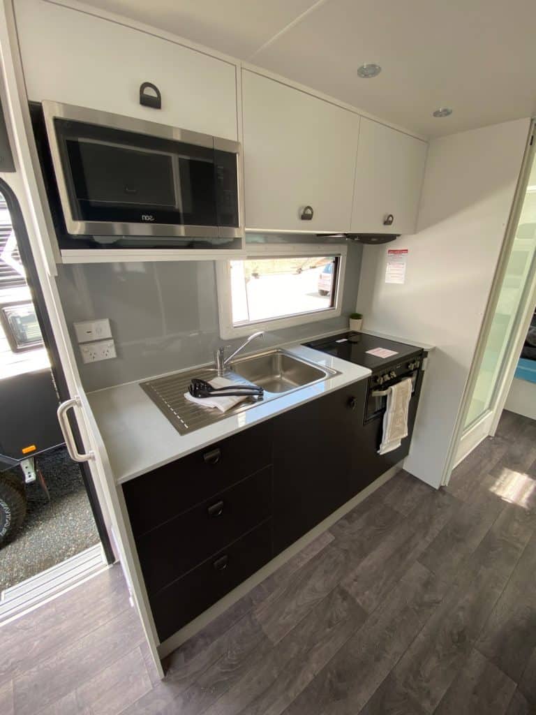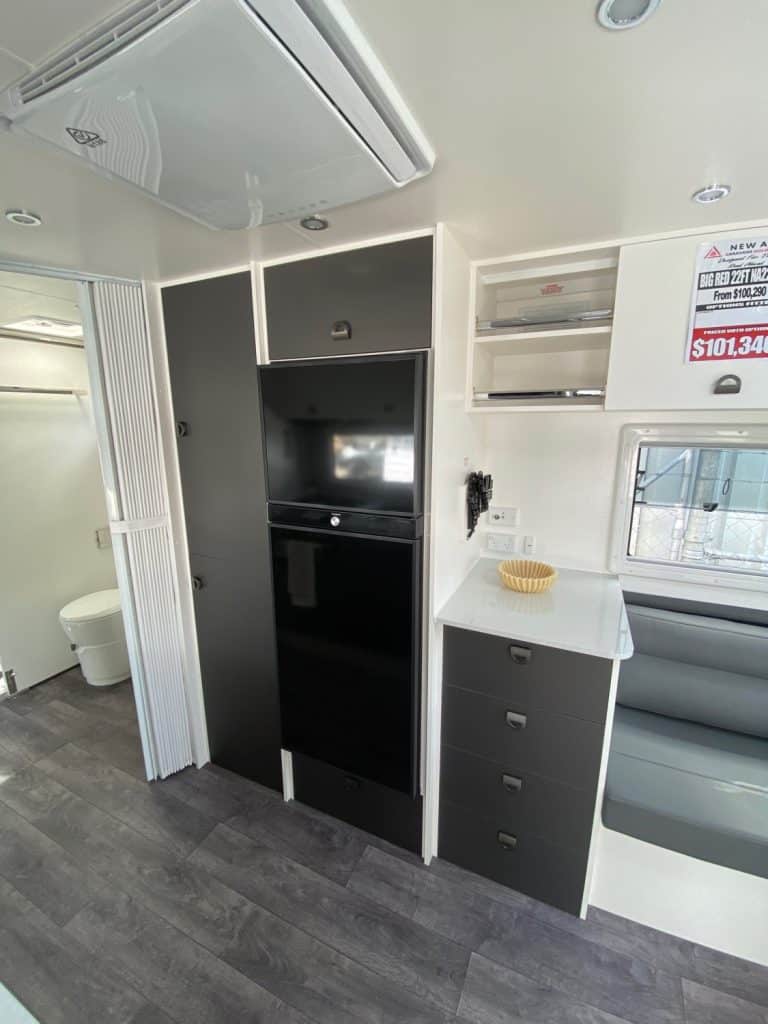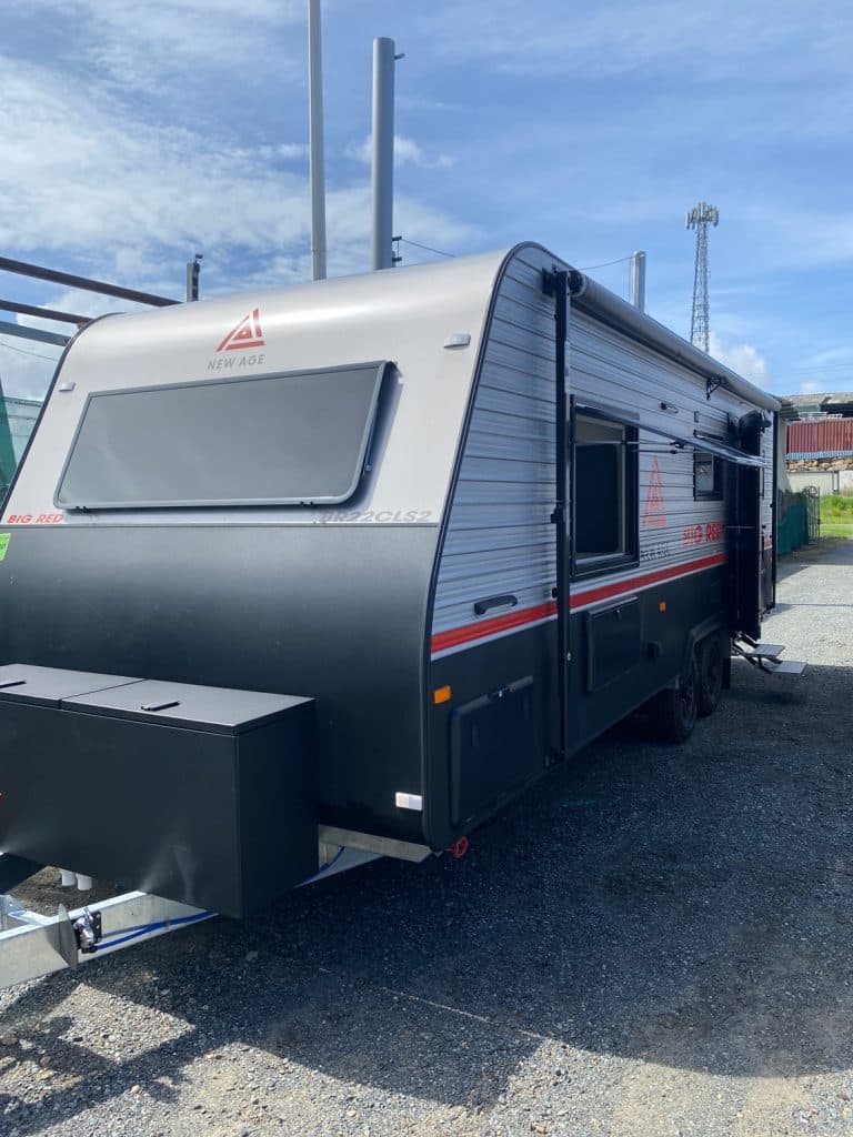Designed as one of our flagship caravans, the layout has the big comfortable rear club lounge with leatherette trim, center ensuite and seperate bedroom at the front of the van.
