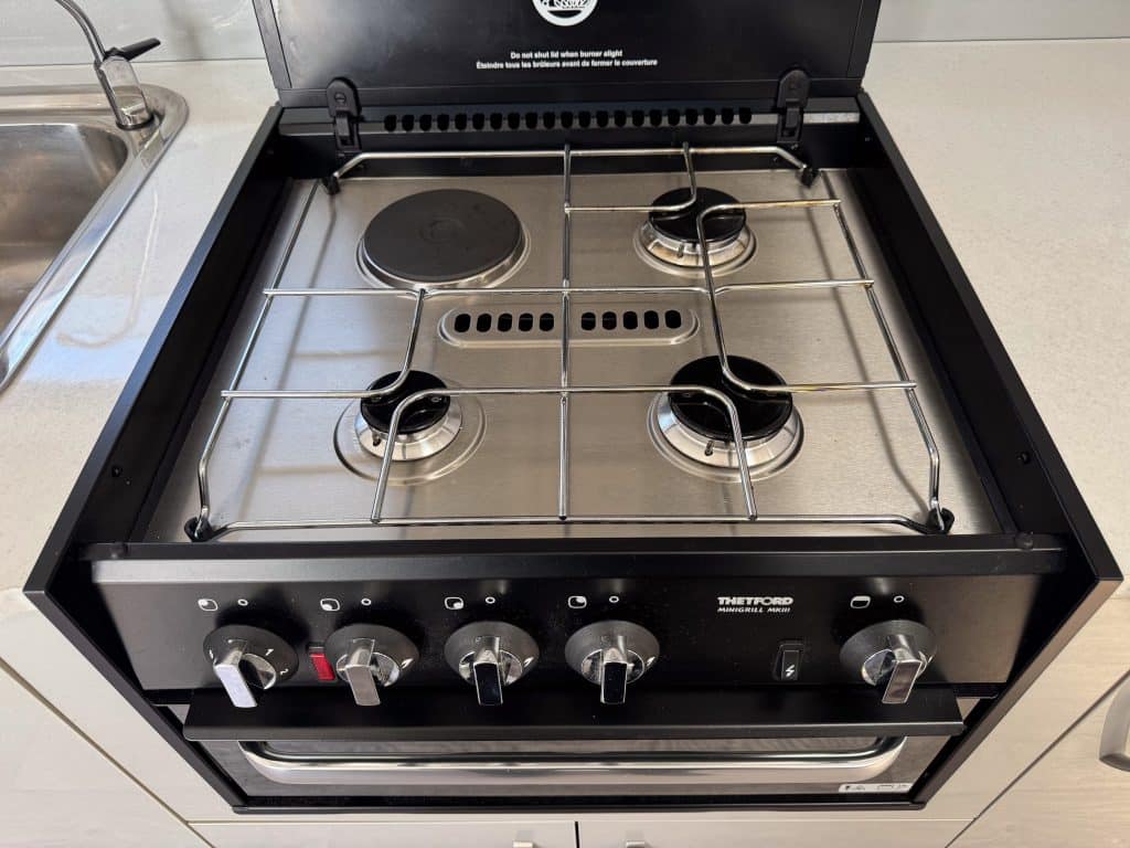 – 1 Electric, 3 Gas Cooktop + Grill