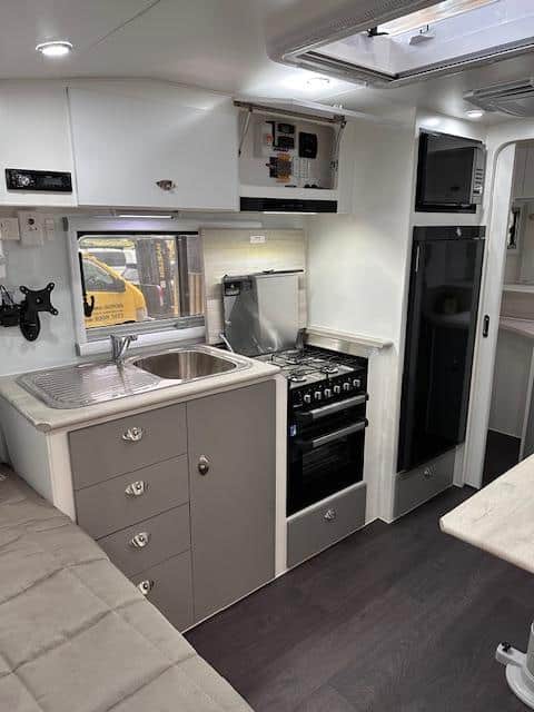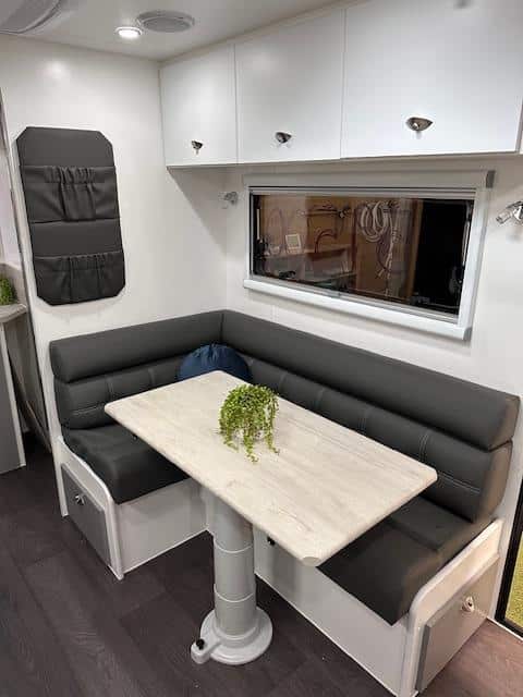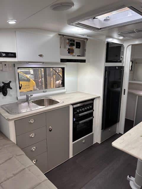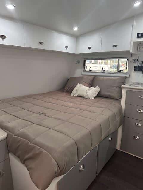 Full size caravan in a compact layout. Equipped with a queen bed and air conditioning/heating for those warm or cold days, gas/electric oven, grill and cooktop, microwave and a separate shower & toilet. This caravan will have you feeling comfortable wherever you are in Australia.
