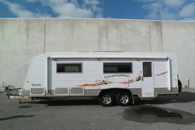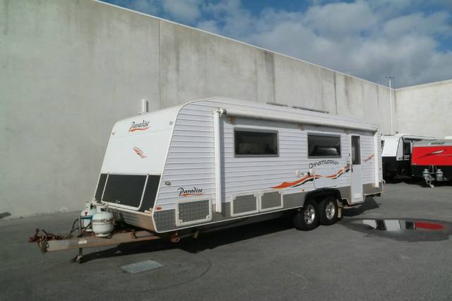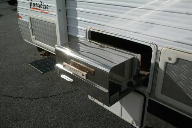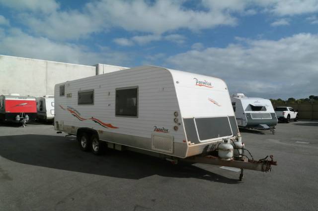 A TOURING BEAUTY HAS ALWAYS BEEN THE PARADISE RANGE OF CARAVANS. A DELUXE LAYOUT COMPROSING OF WELL SPACED AREAS SUITABLE FOR THAT HOME AWAY FROM HOME WITHOUT SACRIFICING ANY CREATURE COMFORTS. SLIDE OUT BBQ, TUNNEL BOOT DRAWERS, STORAGE EVERYWHERE, THIS VAN HAS PLENTY OF HIDDEN TREASURES.