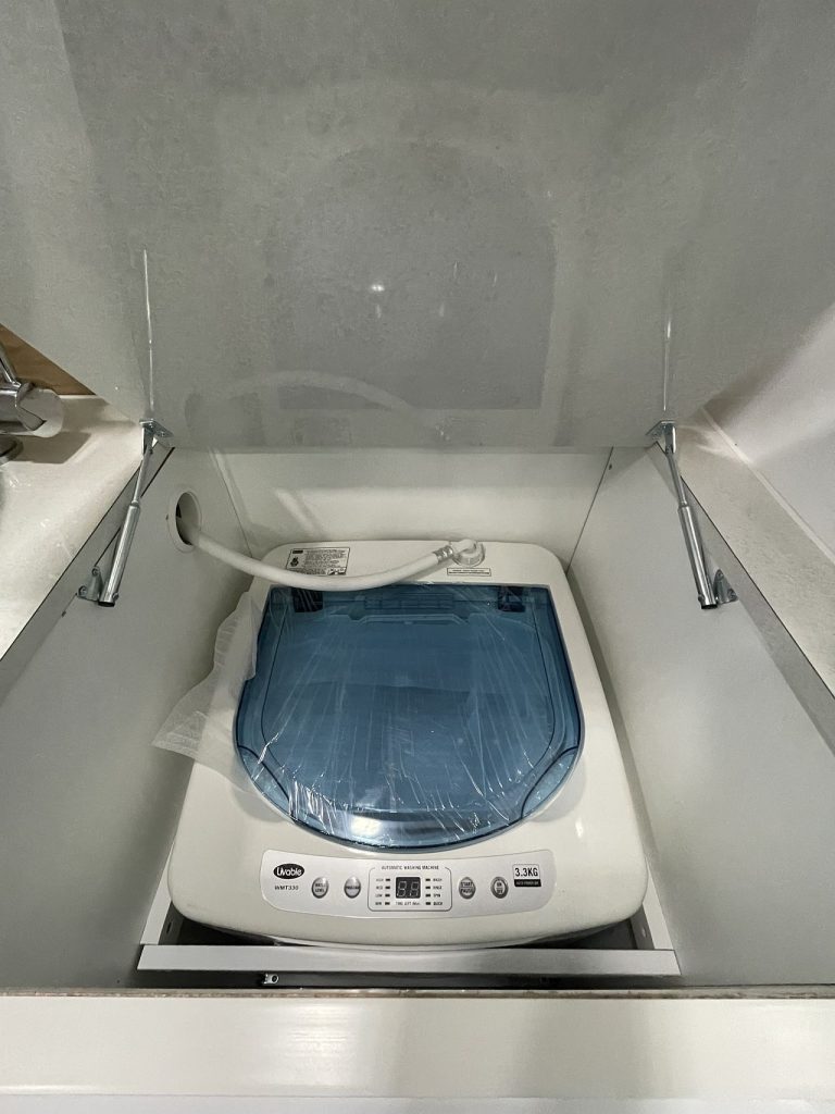 The internal of this caravan is simply stunning. As you walk in the door to the right you have a full Ensuite with fiberglass shower & ceramic toilet. The 3kg top load washing machine will make holidaying easy.