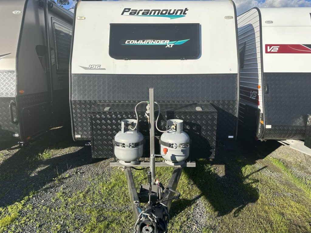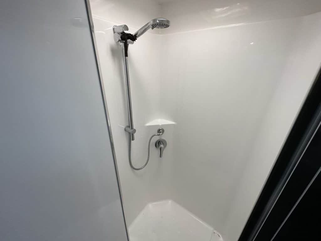 The side of the caravan has a large awning with two picnic tables and front and rear gas BBQ bayonet fitting to suit your site setup. With an exterior entertainment TV locker and speakers externally, those warm nights can be spent outside. Storage is no issue with the extended A-frame housing a toolbox, the front tunnel boot and lockers behind the shower cavity give you peace of mind for packing to go away.