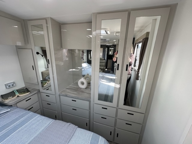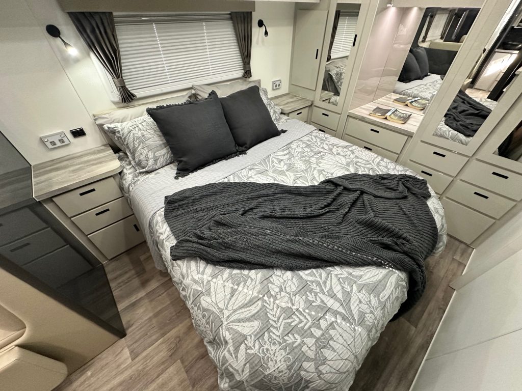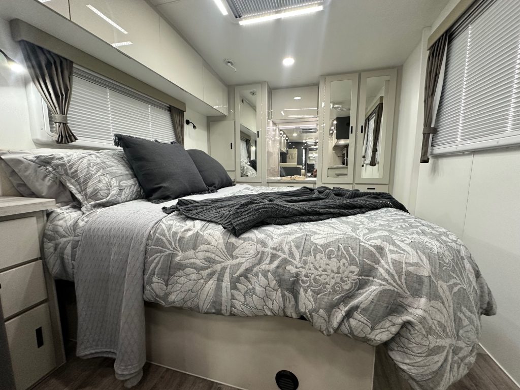 Walking through to the rear of the caravan you will be greeted by an east-west bed with the whole front of the caravan a spectacular arrangement of wardrobes.