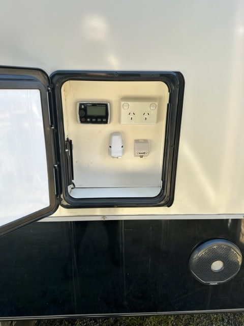 Stepping out the external of this caravan you have a 6” chassis, leaf spring suspension with a 6” A-frame and chassis. The large awning gives you great outdoor shelter and use of the small TV entertainment locker, gas bayonet fitting for outdoor cooking, and picnic table.