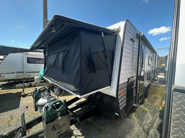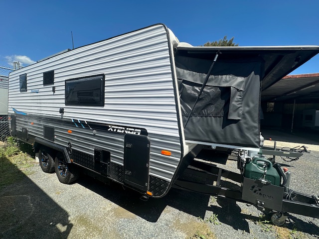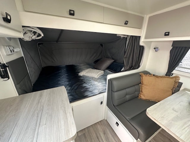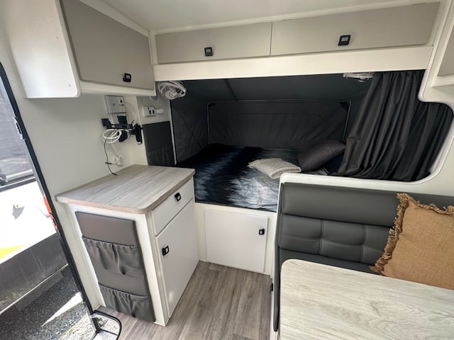 This caravan will get you started with your off-grid travels, running a Projecta PM200 charger, Dual batteries, and a 170W solar panel with twin 95L water tanks.