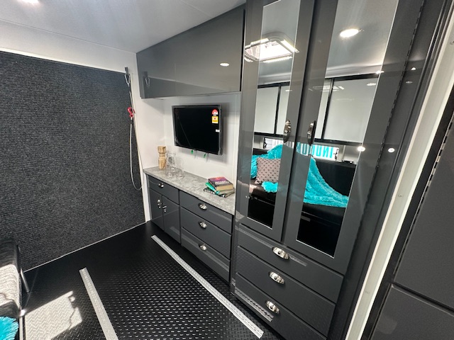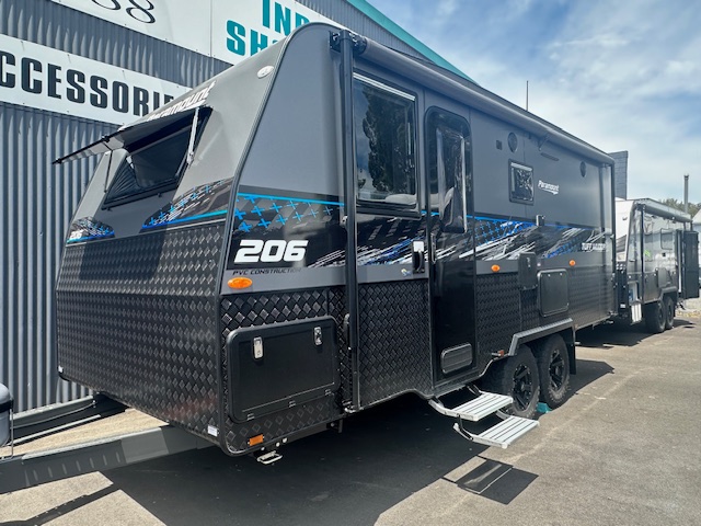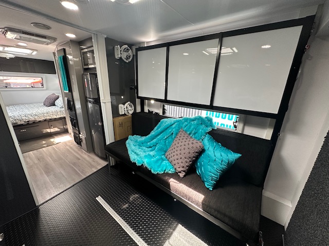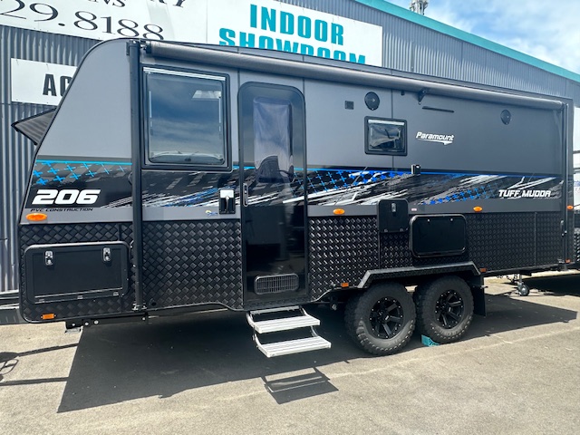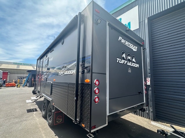 The Paramount Tuff Mudda is one very slick “Toy Hauler”. The versality the Tuff Mudda brings to caravanning is endless. Whether it’s going to a caravan park, or setting off in the outback, this toy hauler range can cater for all your needs. The Main bed can either be expanding to conserve on space or internal for the creature comforts of a standard caravan. The ensuites can either be combination shower & toilets or full Ensuites, including a washing machine where required. To top it off is the custom garage in the rear. The garage area can consist of 1,2,3 or 4 bunks along with custom cabinets, Tv entertainment units & storage. The length of the garage can also be made custom to fit all the required toys while, also converting into a lounge room & bedroom.
